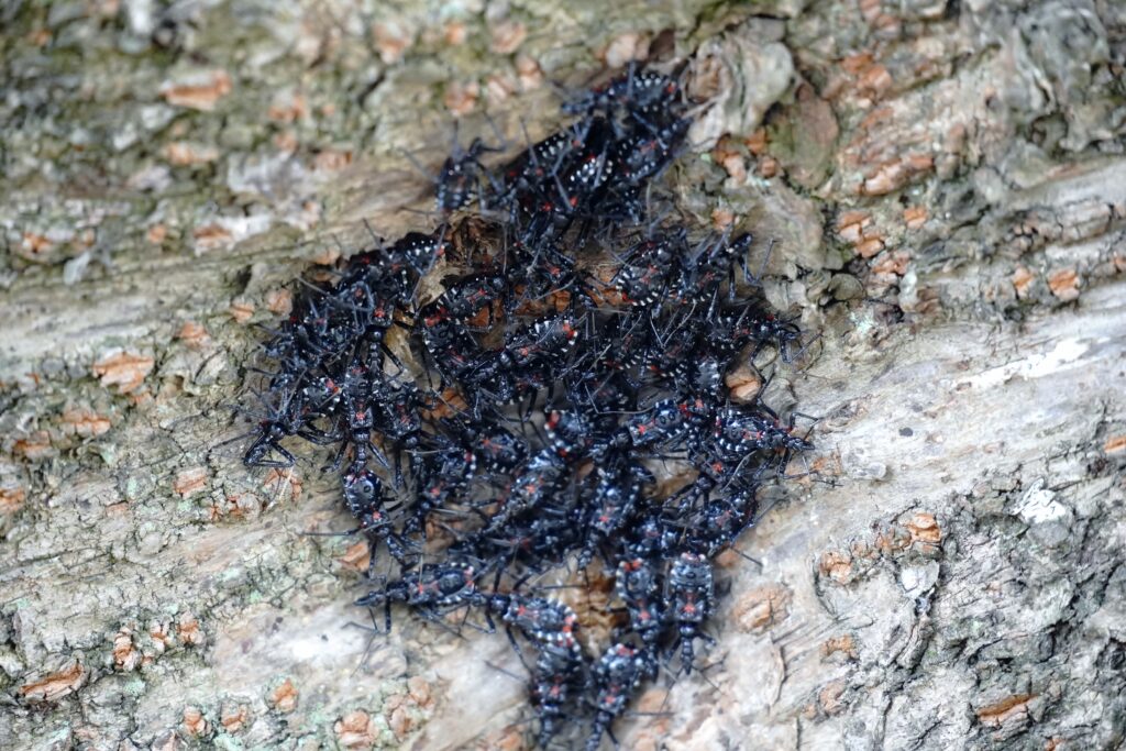 桜の幹に黒いもの発見 ヨコヅナサシガメ幼虫
