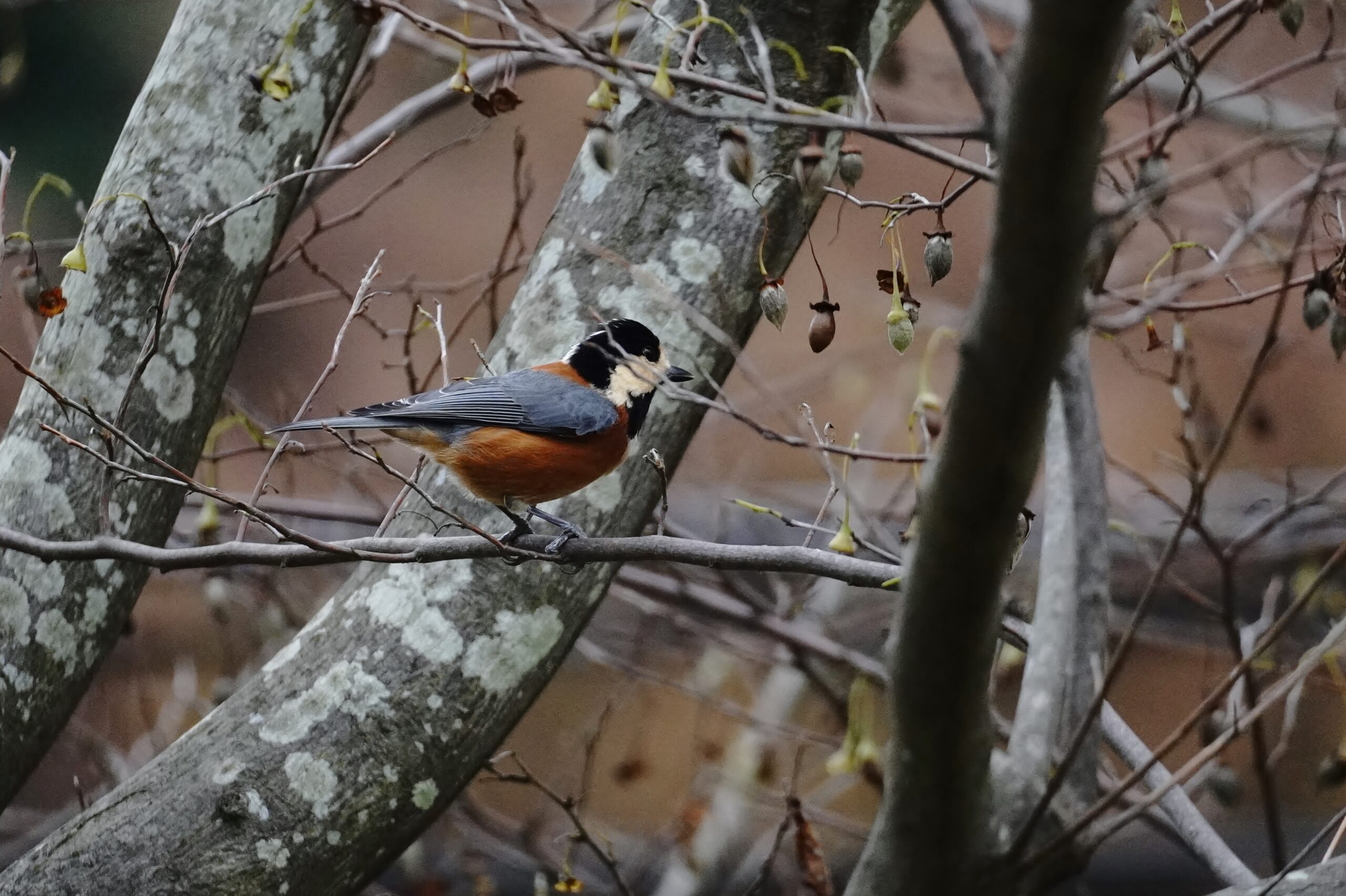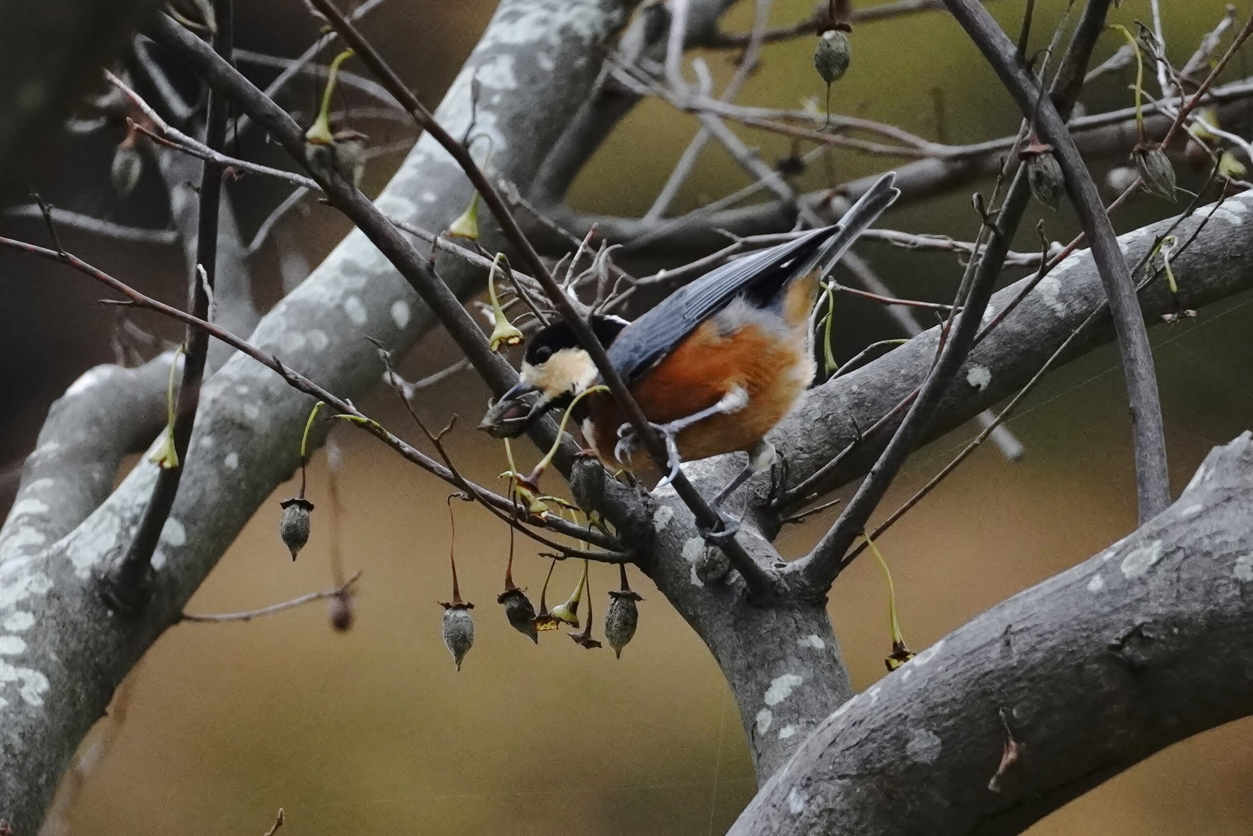 ヤマガラ エゴノキの実も色が変わり少なくなりました