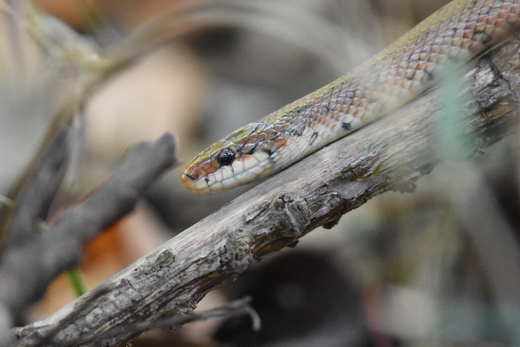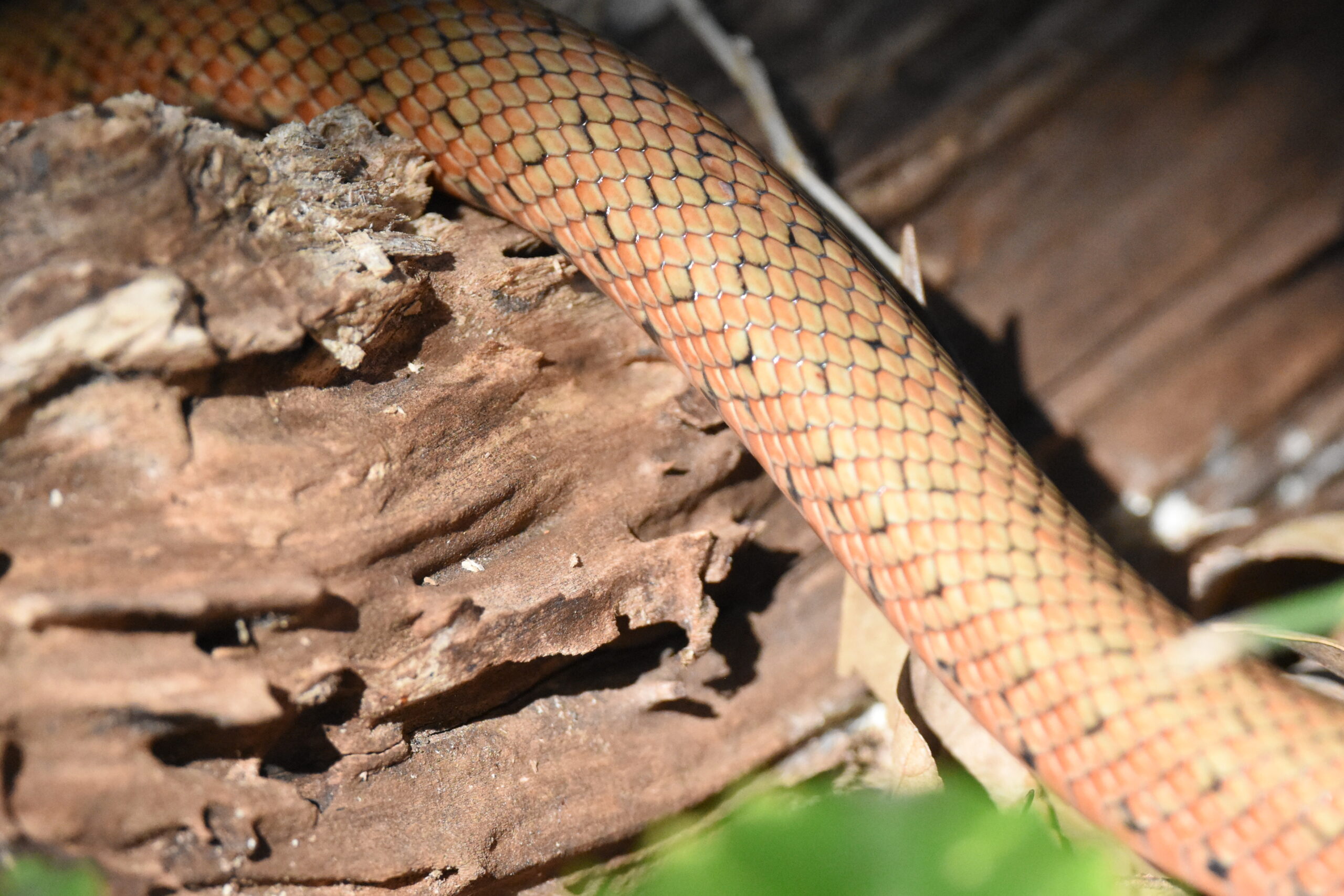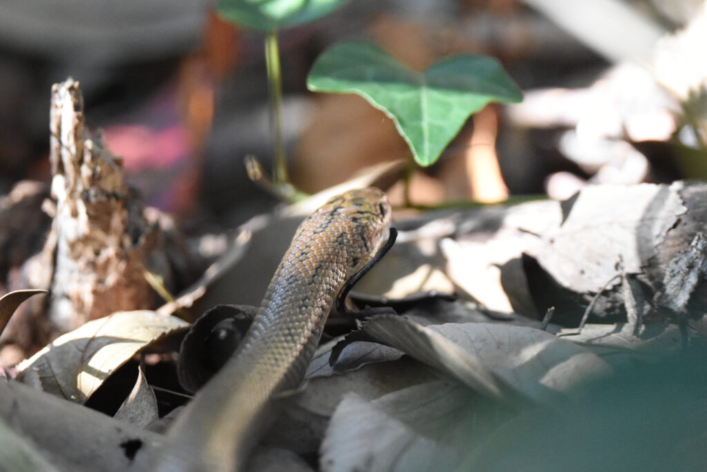 ジムグリ 自然通信 2025.11.15 初めてジムグリをはっきり見ました。今まではジムグリだか、ヒバカリだか分からないまま怖がっていました。ジムグリはオレンジ色っぽくて黒い模様がたくさんあるイメージでしたが、小口さんから「えりに白い模様がないのでジムグリです」と教わりました。胴はこんな色と模様。 頭の後ろはこんな感じ 顔はヘビだと思わなければかわいい。
