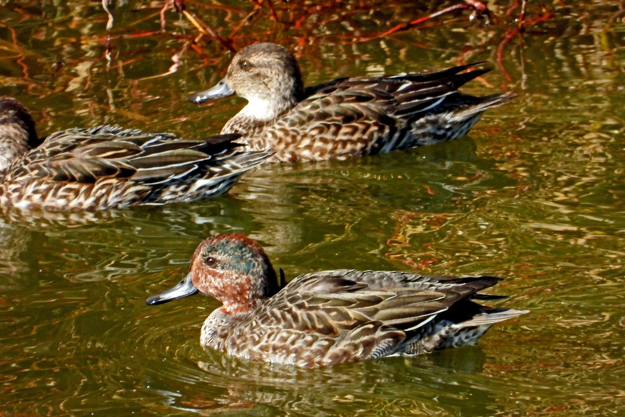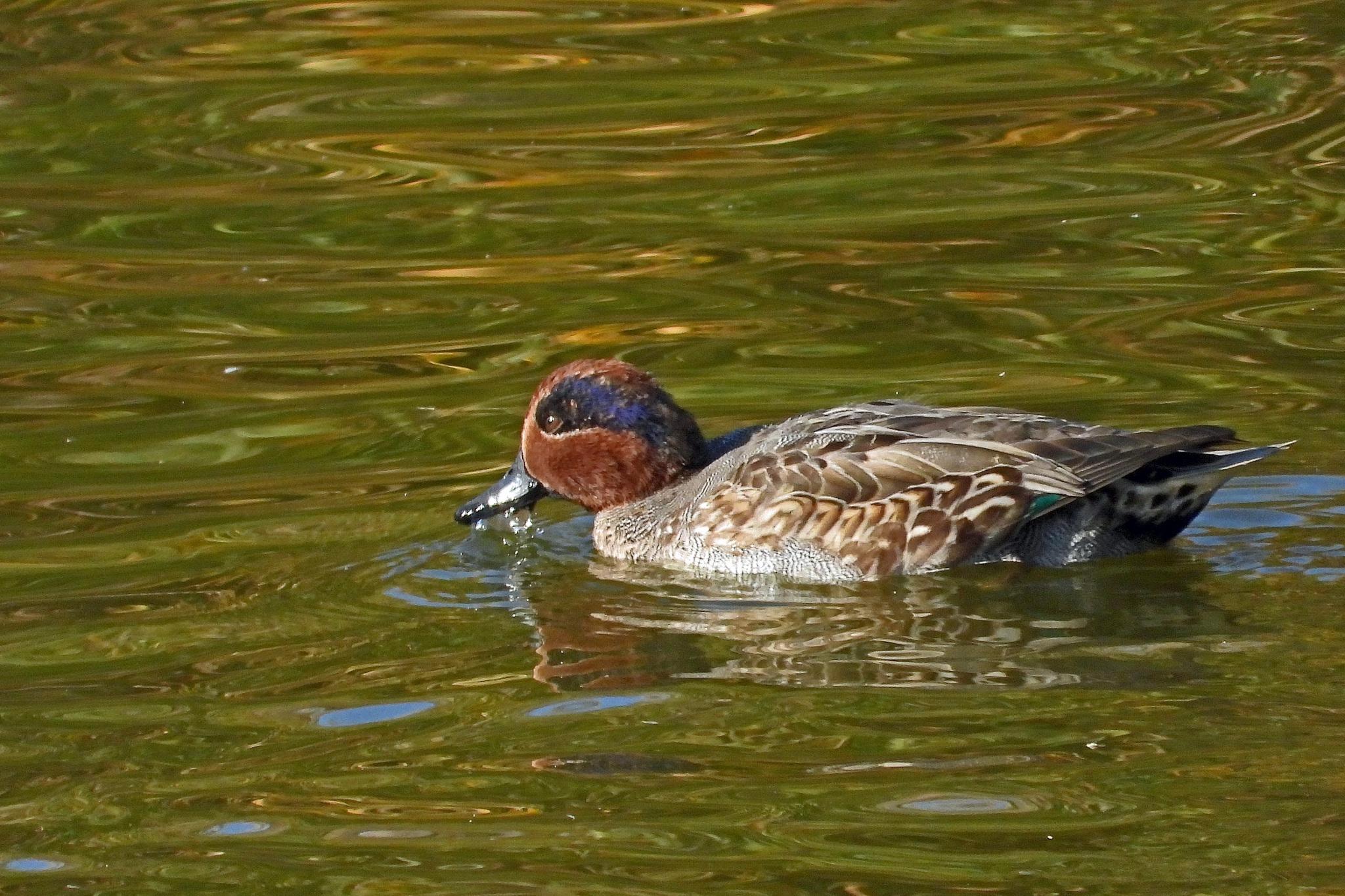くちばしが真っ黒なので、エクリプス状態の「コガモ」のオスかと思いました。