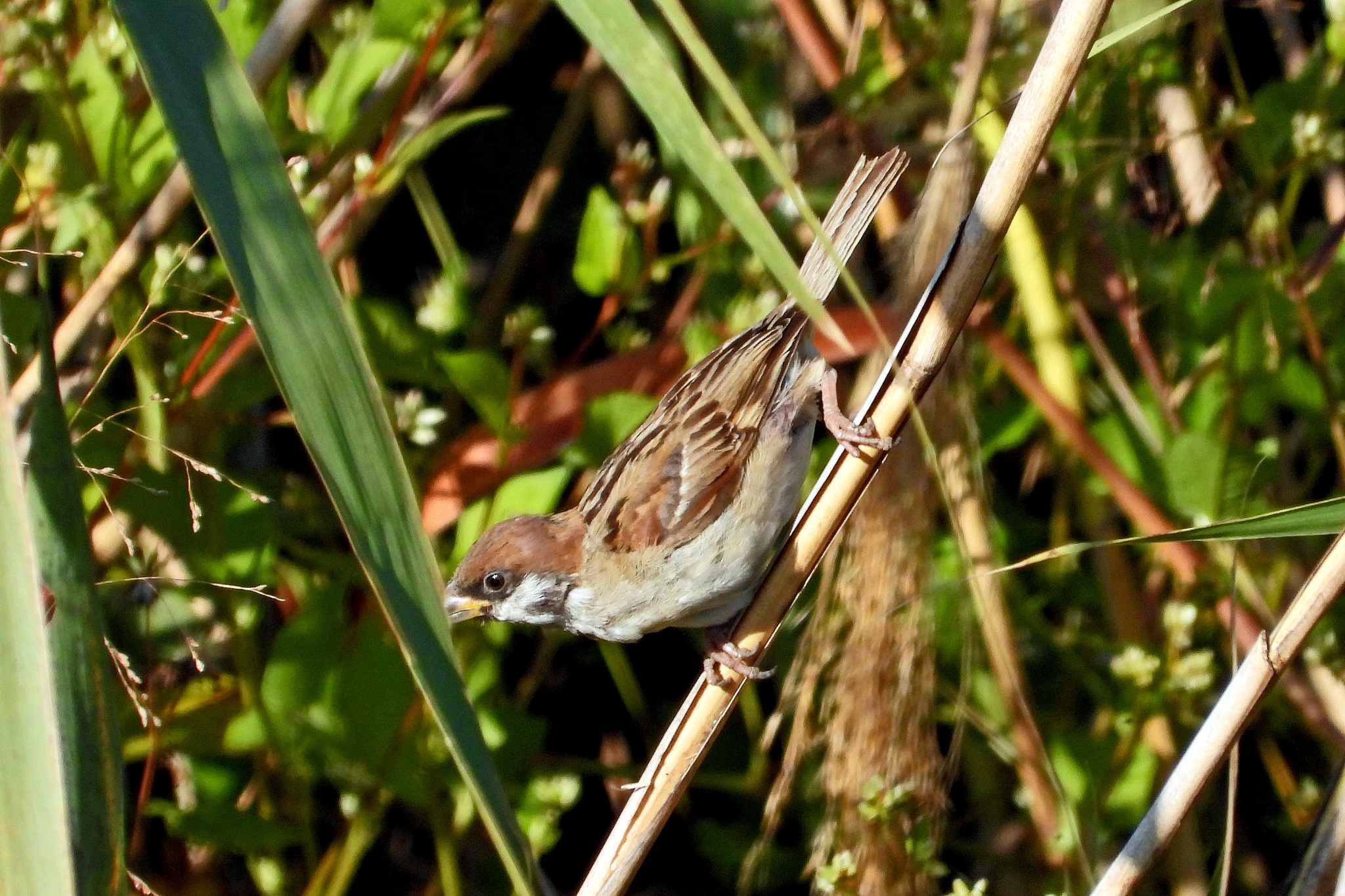 下の写真は、額から頭頂に掛けて黄白色になりかけで、換羽中ですね。