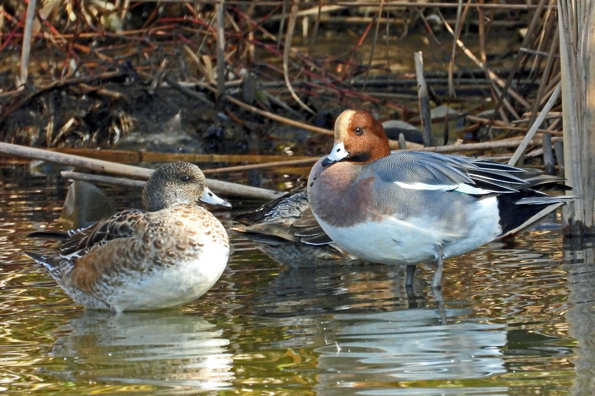カップルらしき「ヒドリガモ」がのんびりしてました。