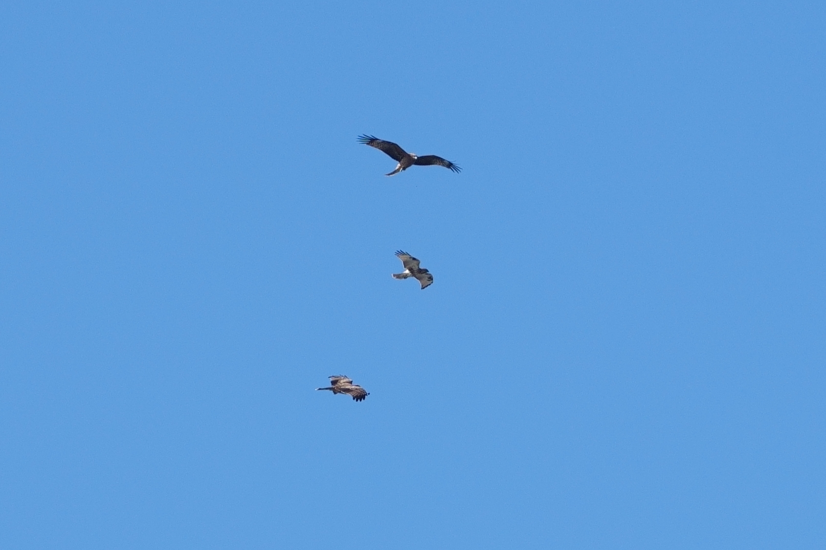 トビに絡まれるノスリ