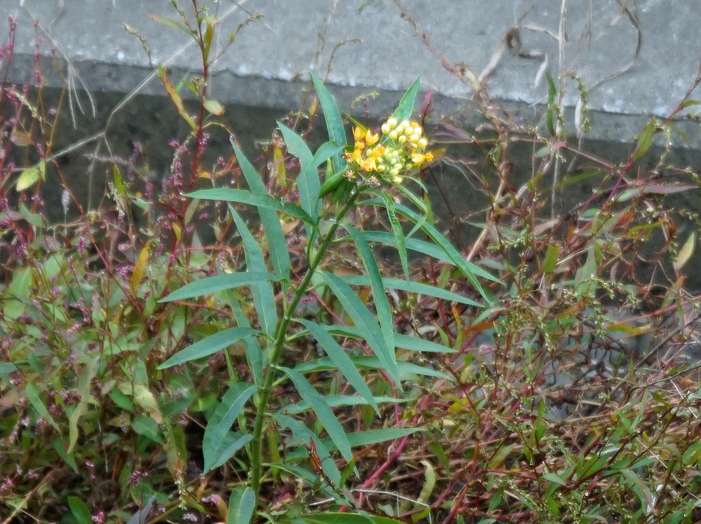 川岸に見えた黄色い花は、種が飛んで出てきたのでしょう、アスクレピアスの逸出花でした。