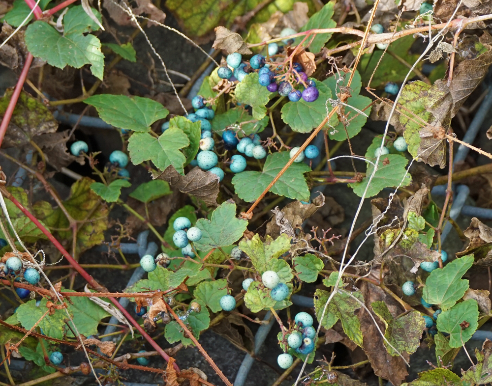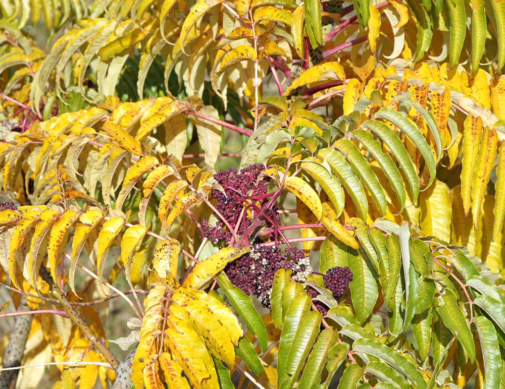 遊水地側の土手にでていたカラスザンショウ。葉は黄色に、実は赤っぽくなってなかなかきれいでした。
