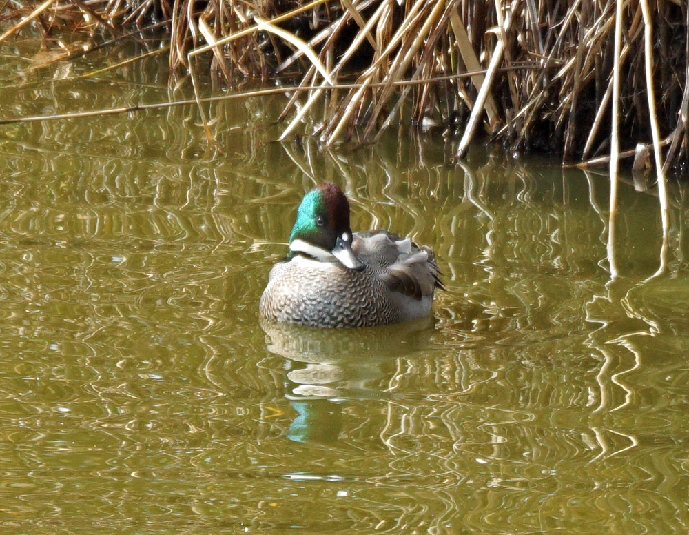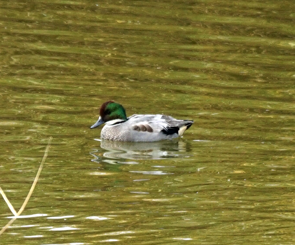 オスもずいぶん換羽がすすんでいました。 普通のヒドリガモと一緒に。