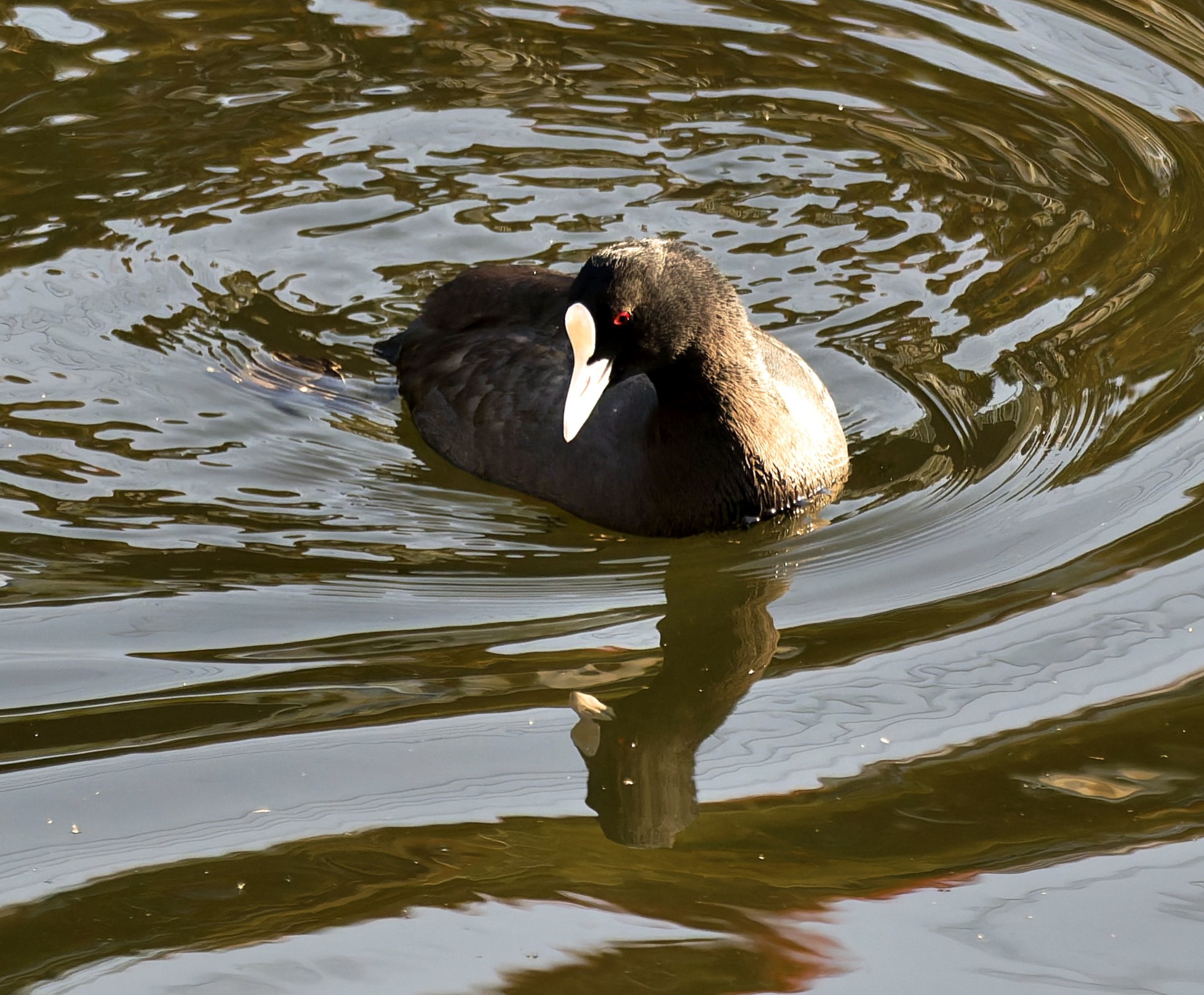 引地川に行くと、今季初めて、ここでオオバンに会えました。