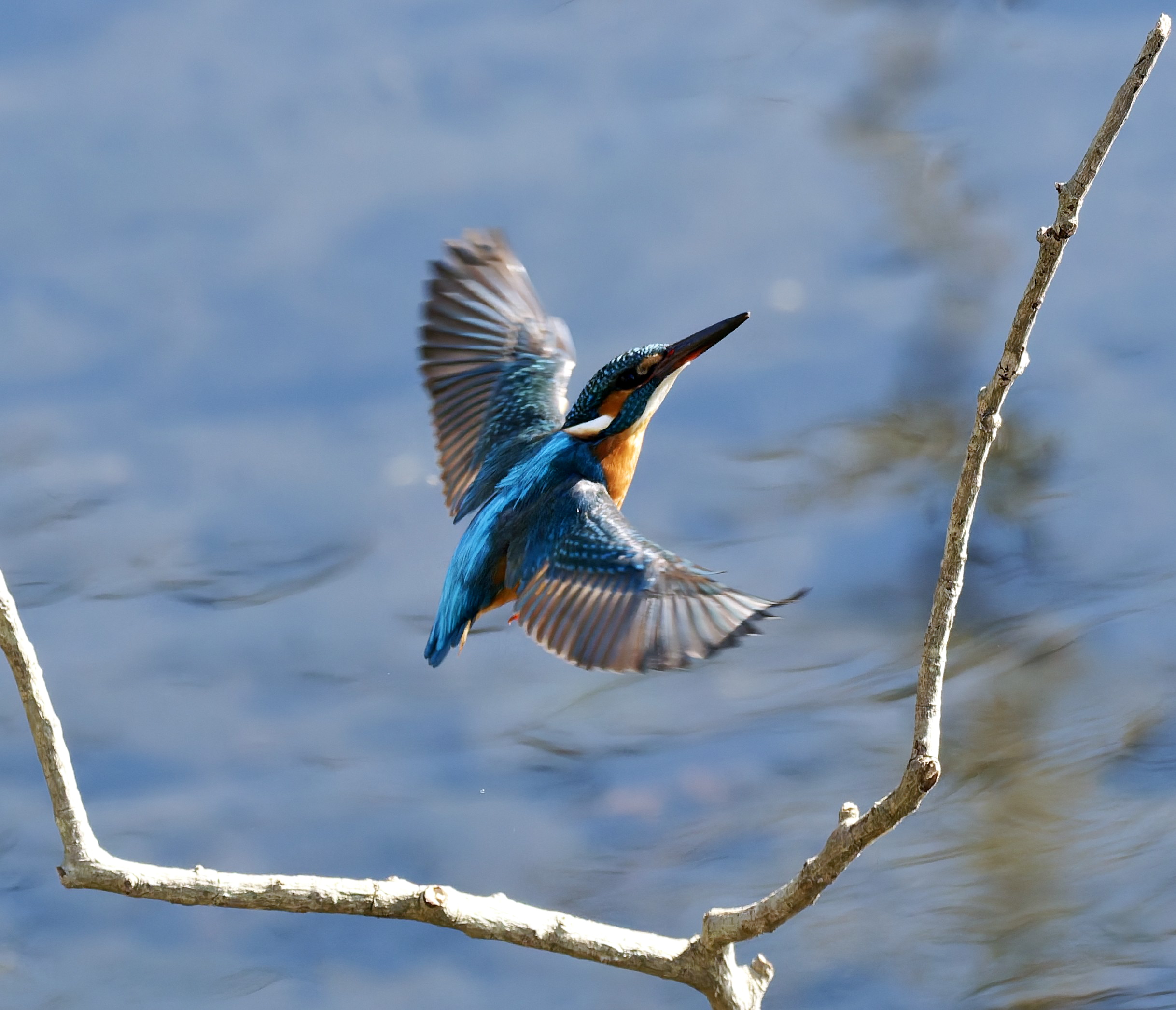 川中の止まり木にカワセミ、カメラマンの方においでと手招きされ、いそいそと。