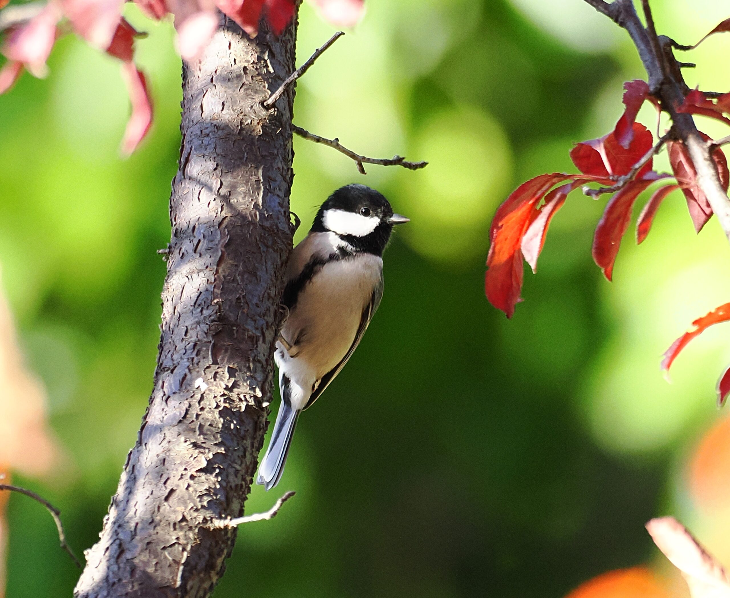 また、しばらくうろつくと、シジュウカラの群れが、低い木の周りを飛び交っていました。