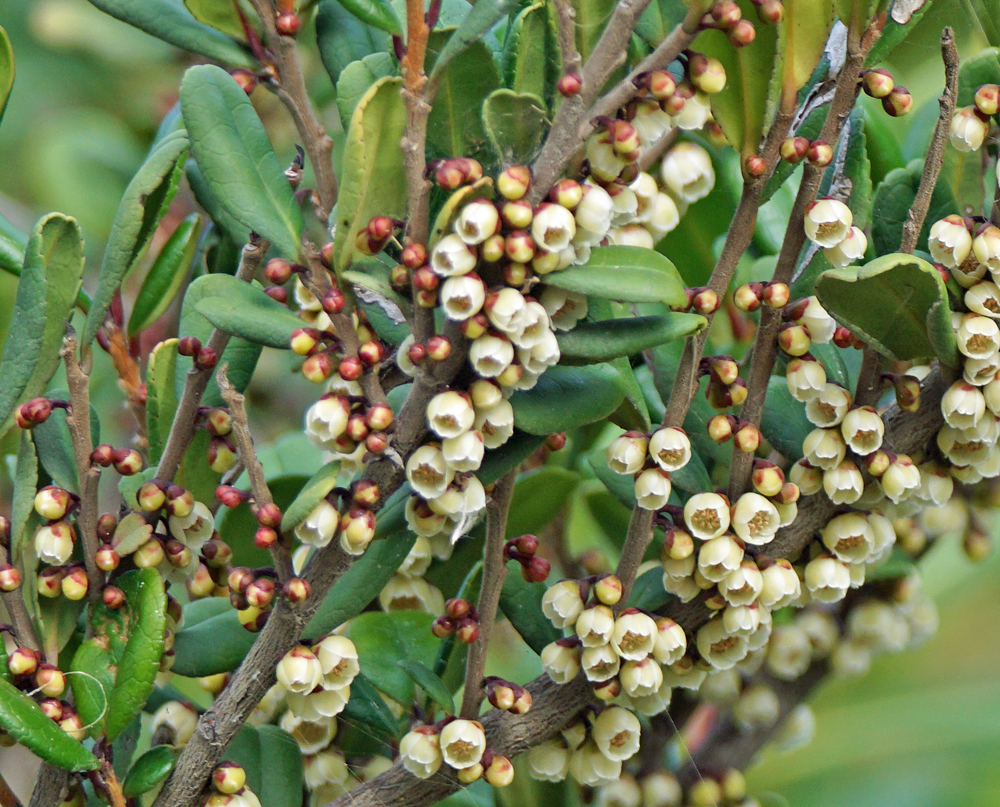 歩いていると、ウッと、ちょっと苦手な臭い。 見回すと、ハマヒサカキが花盛りでした。