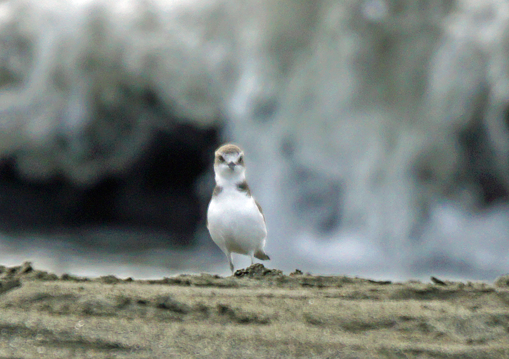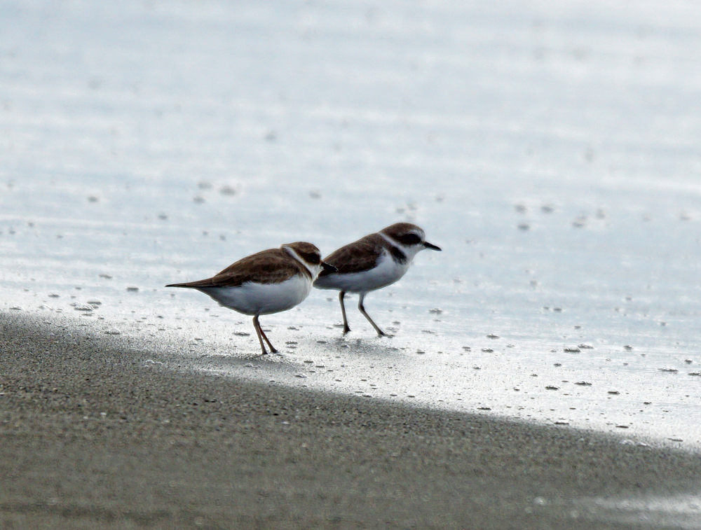 浜には、シロチドリが3羽。 1羽と2羽に別れて、波打ち際に居ました。