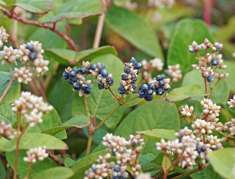 サイクリングロード脇のツルソバも若実になっていました。 ここに繁茂していることを、今年初めて気づいた植物です。