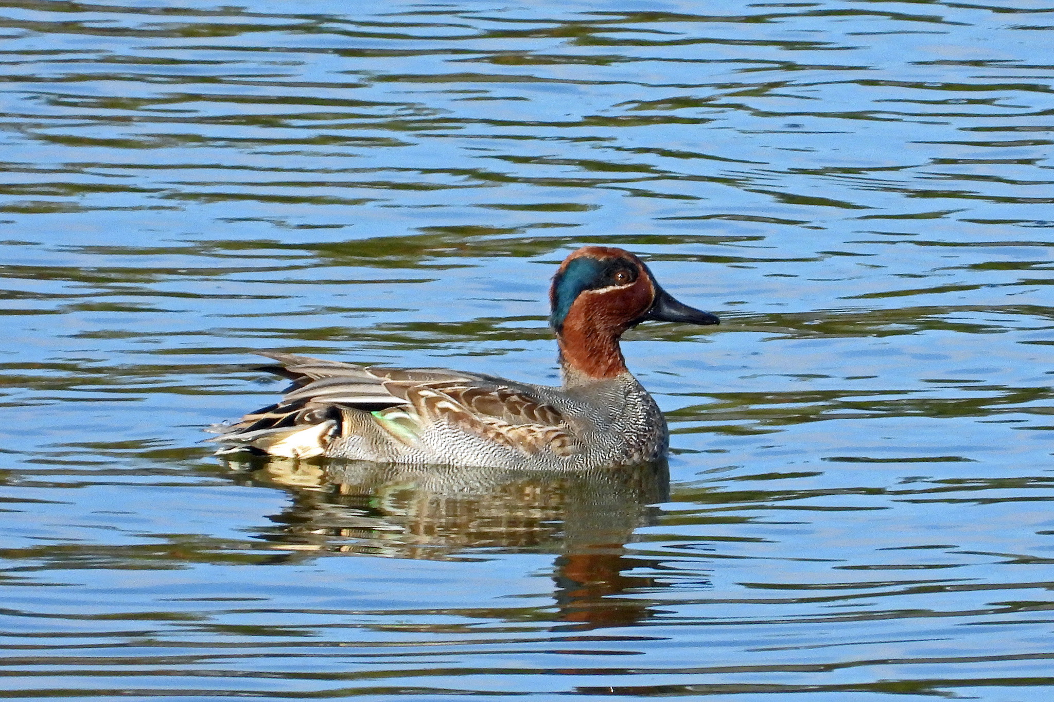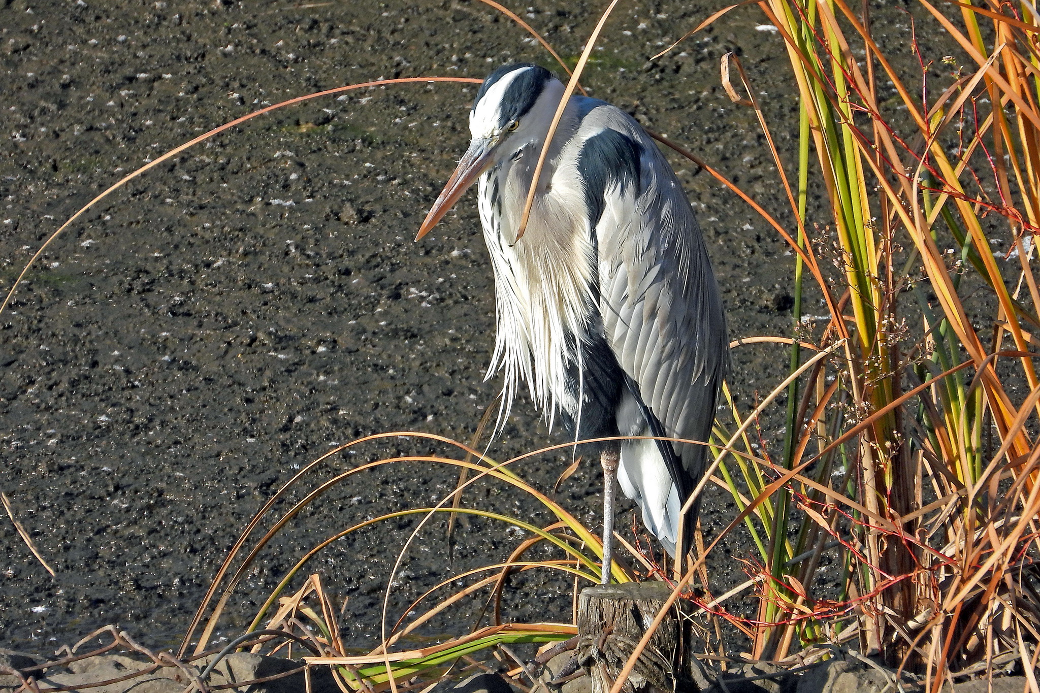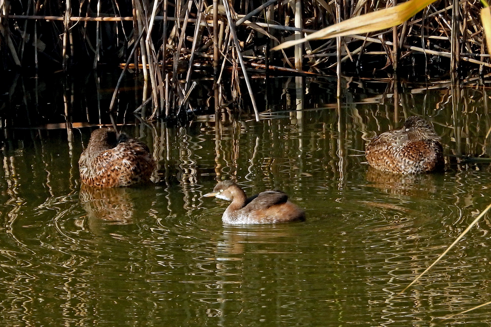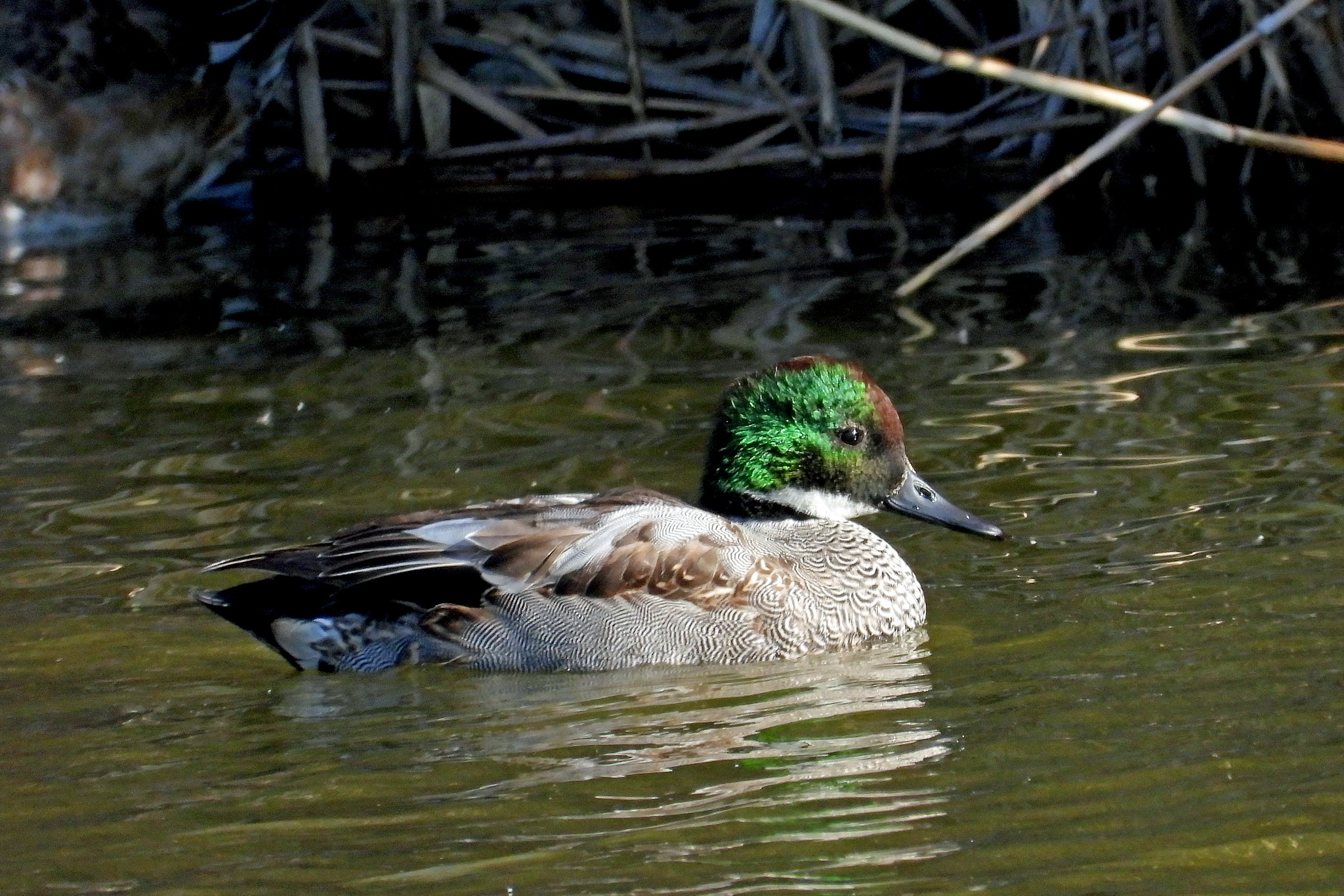 カモたちは早々と朝食を済ませて、葦原の根元で朝寝モードになっているため、