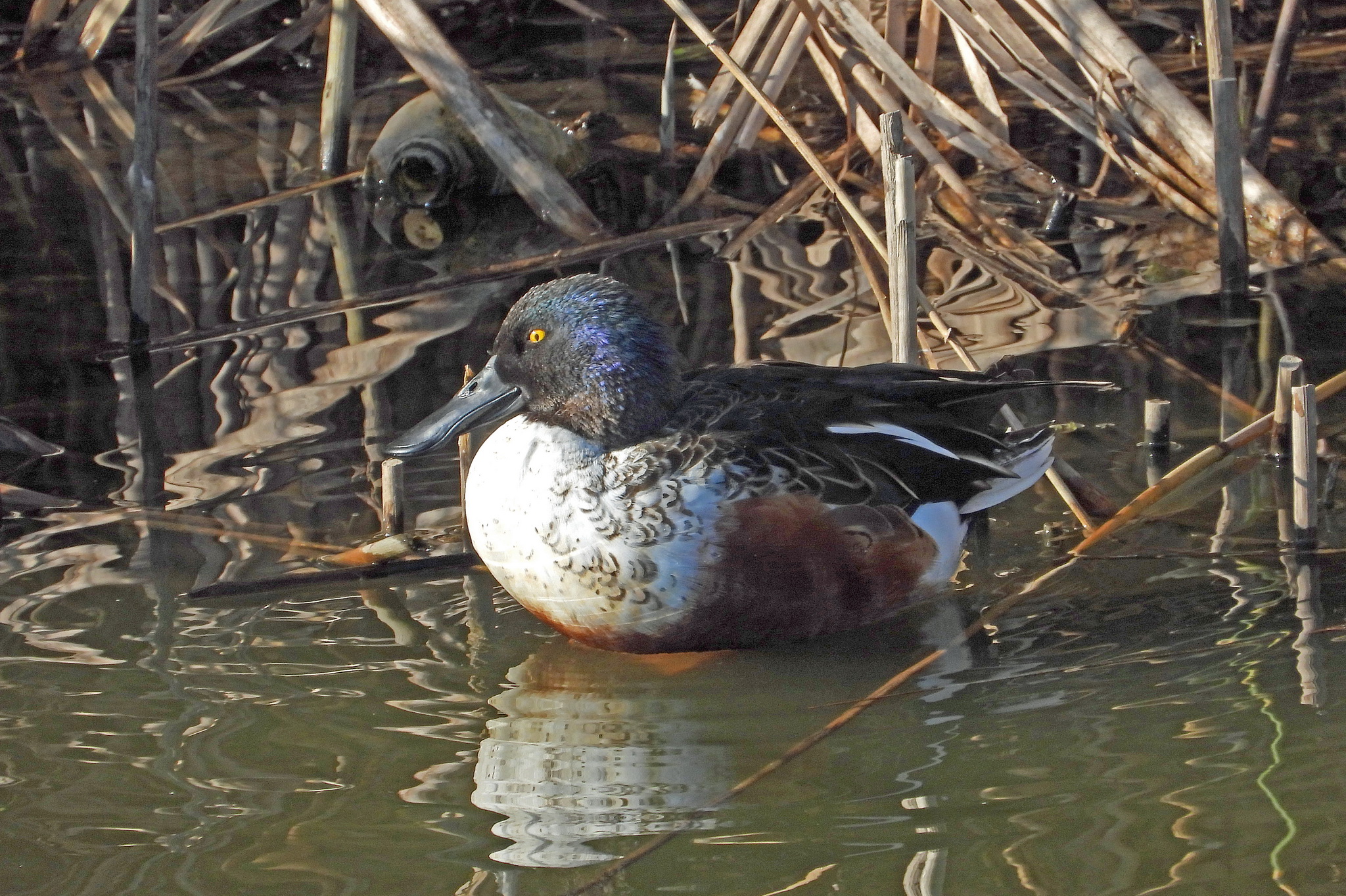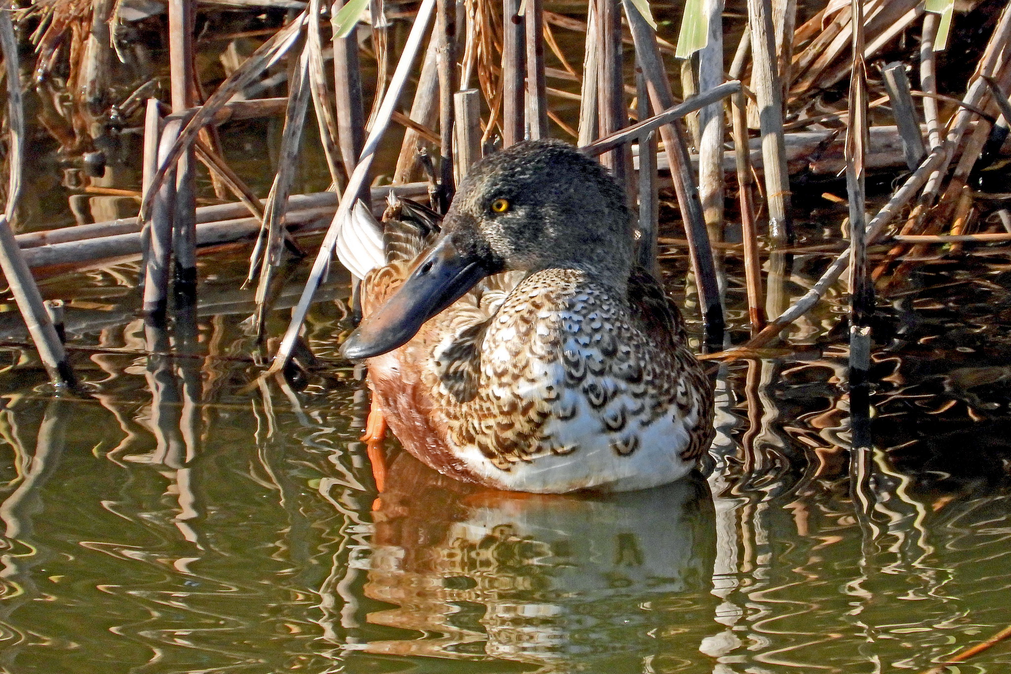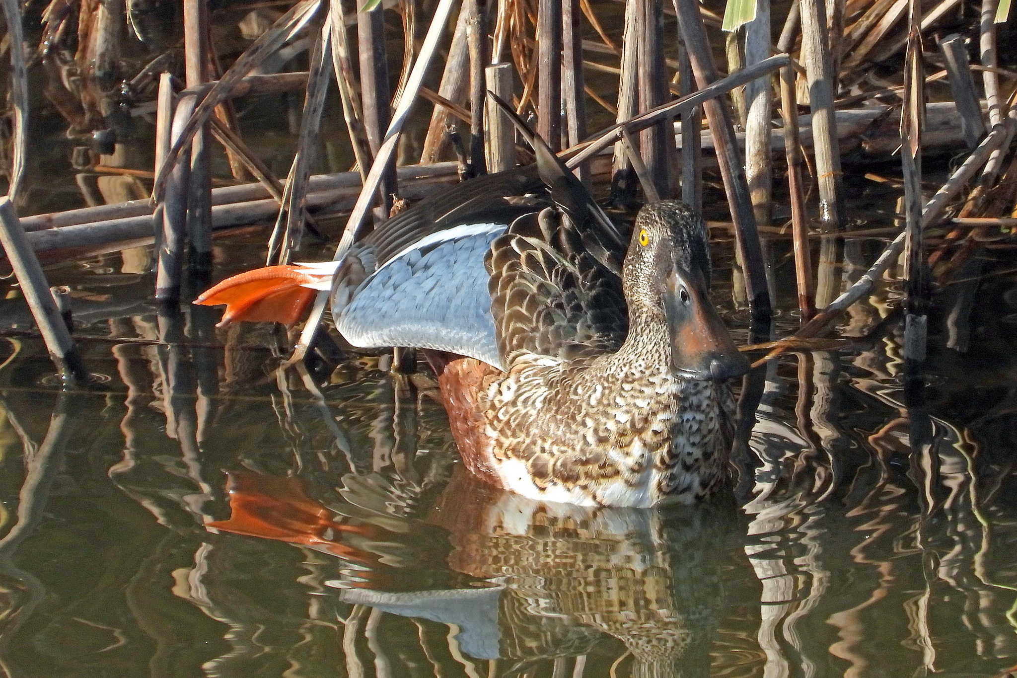 そばにはいつものように、換羽完了まじかの「ハシビロガモ」が居ます。