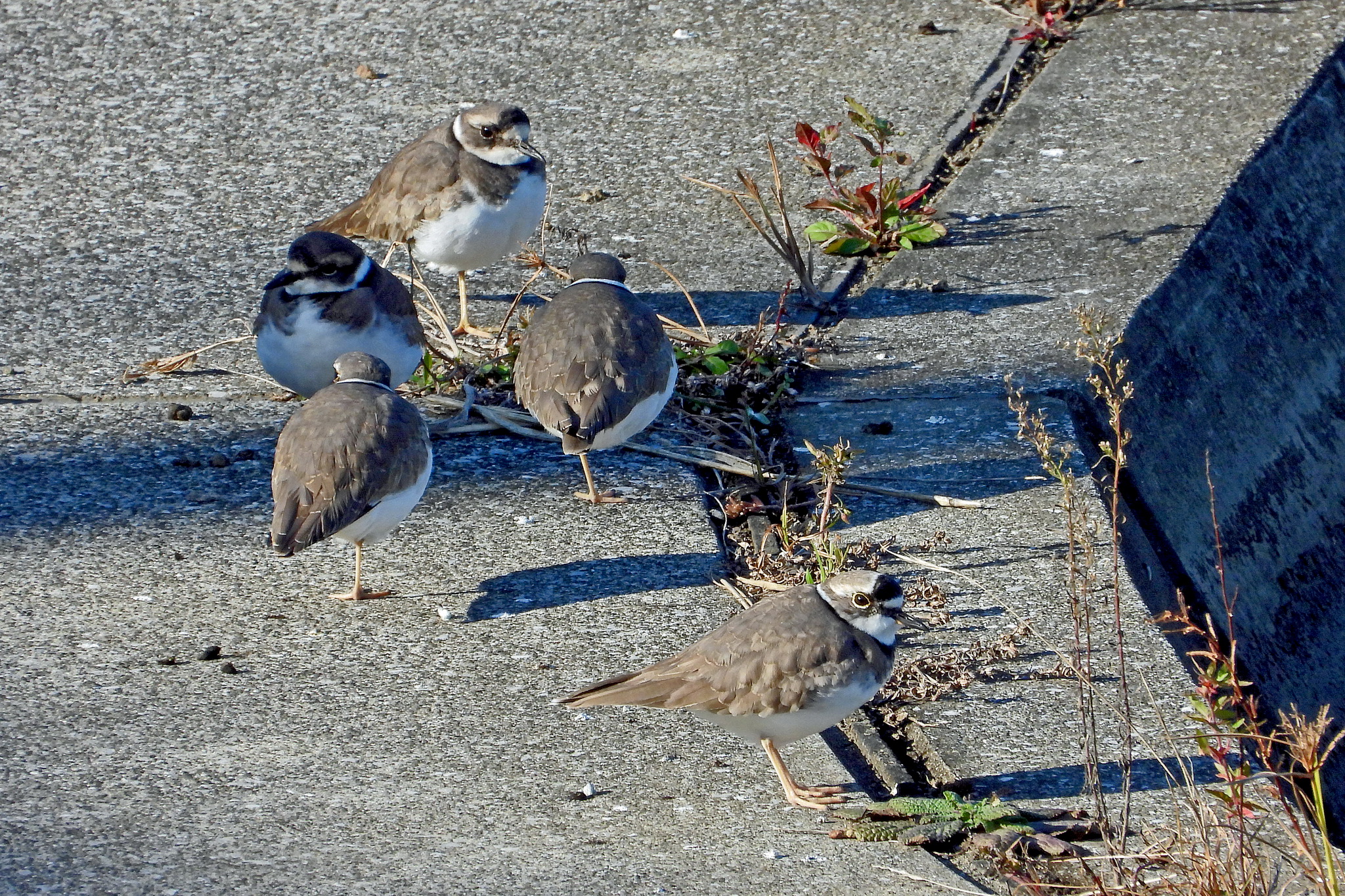 おっ、犬走に「イカルチドリ」が五羽居ます。