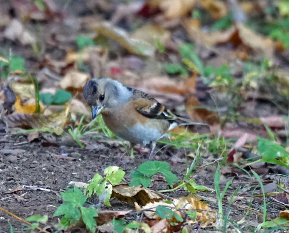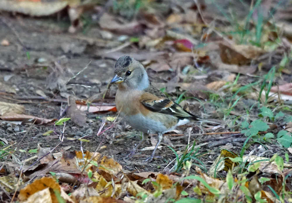 あら~、頭がコマ塩だわ~、などと言いながら、みんなで楽しみました。 まだ警戒心が足りない、若い個体のよう。 頭上のイヌシデの枝にパラパラとカワラヒワたちが居て、アトリも数羽混ざっていましたが、撮れないうちに一斉にとびだして、地面の1羽も居なくなりました。