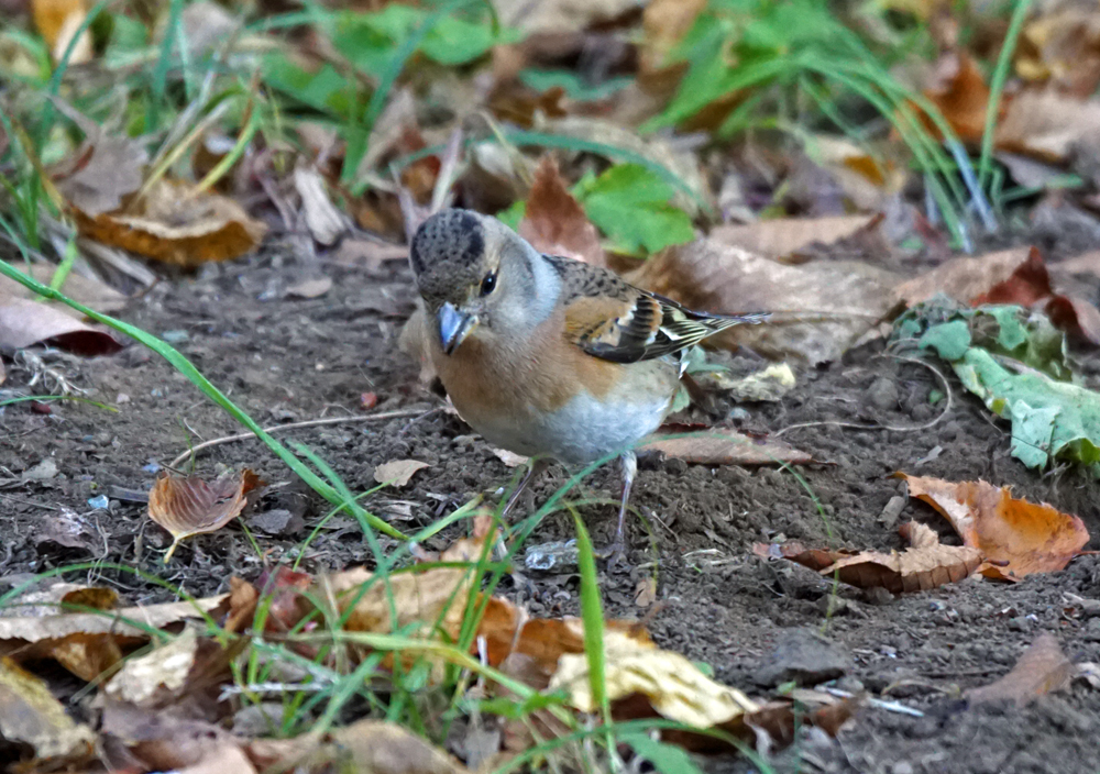 何だろうと確認するとアトリでした。 エサ探しをしながら、すぐ近くをウロウロ。