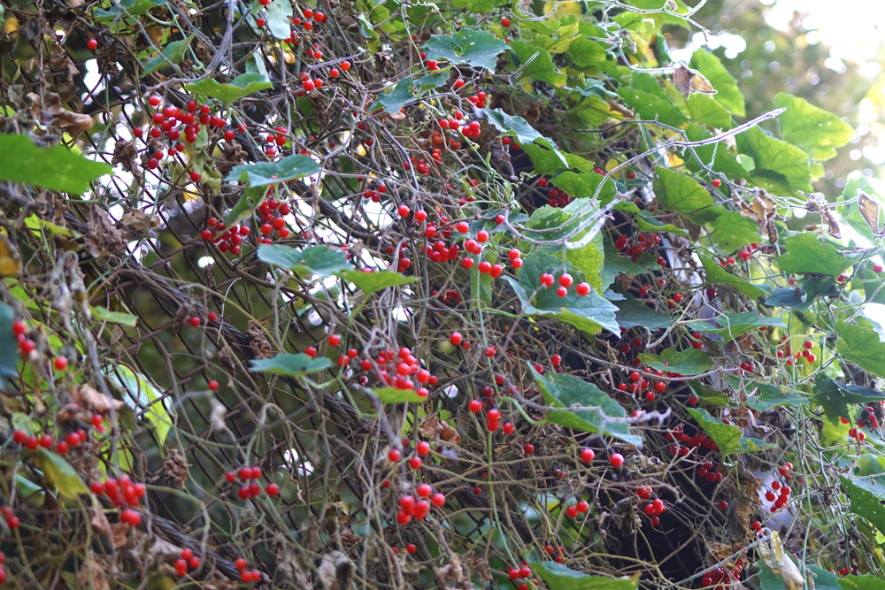 あら~、赤い実がいっぱい!数か所でヒヨドリジョウゴの実が見事でした。