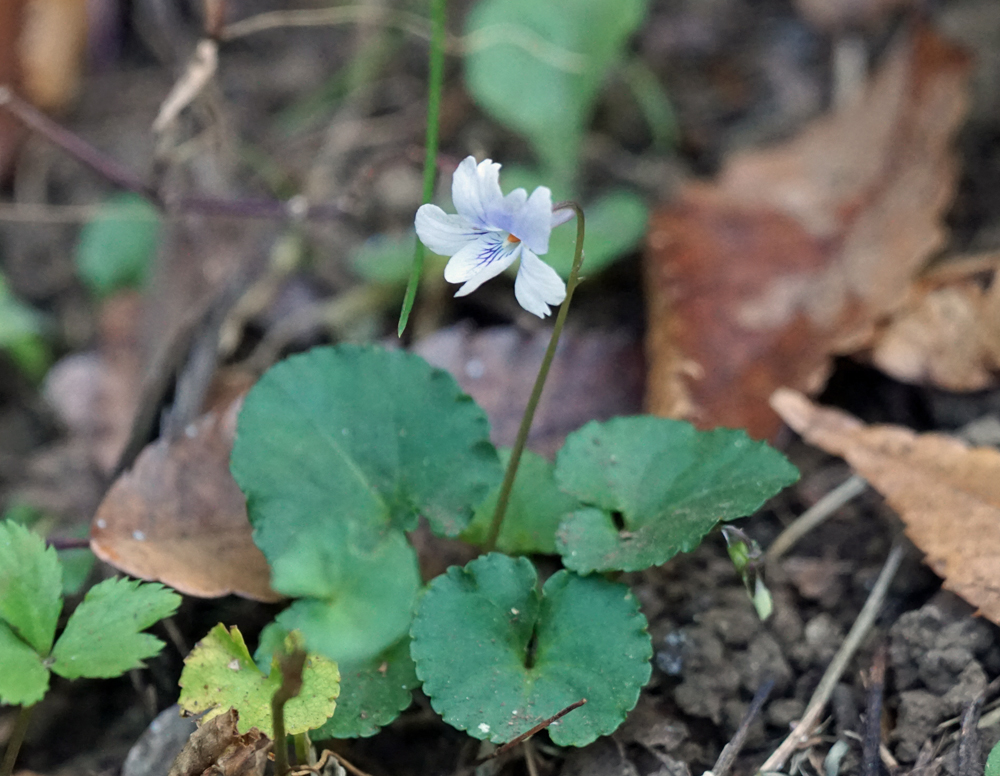 その下で、タチツボスミレが花をつけていて、もう?、と逆にビックリ。