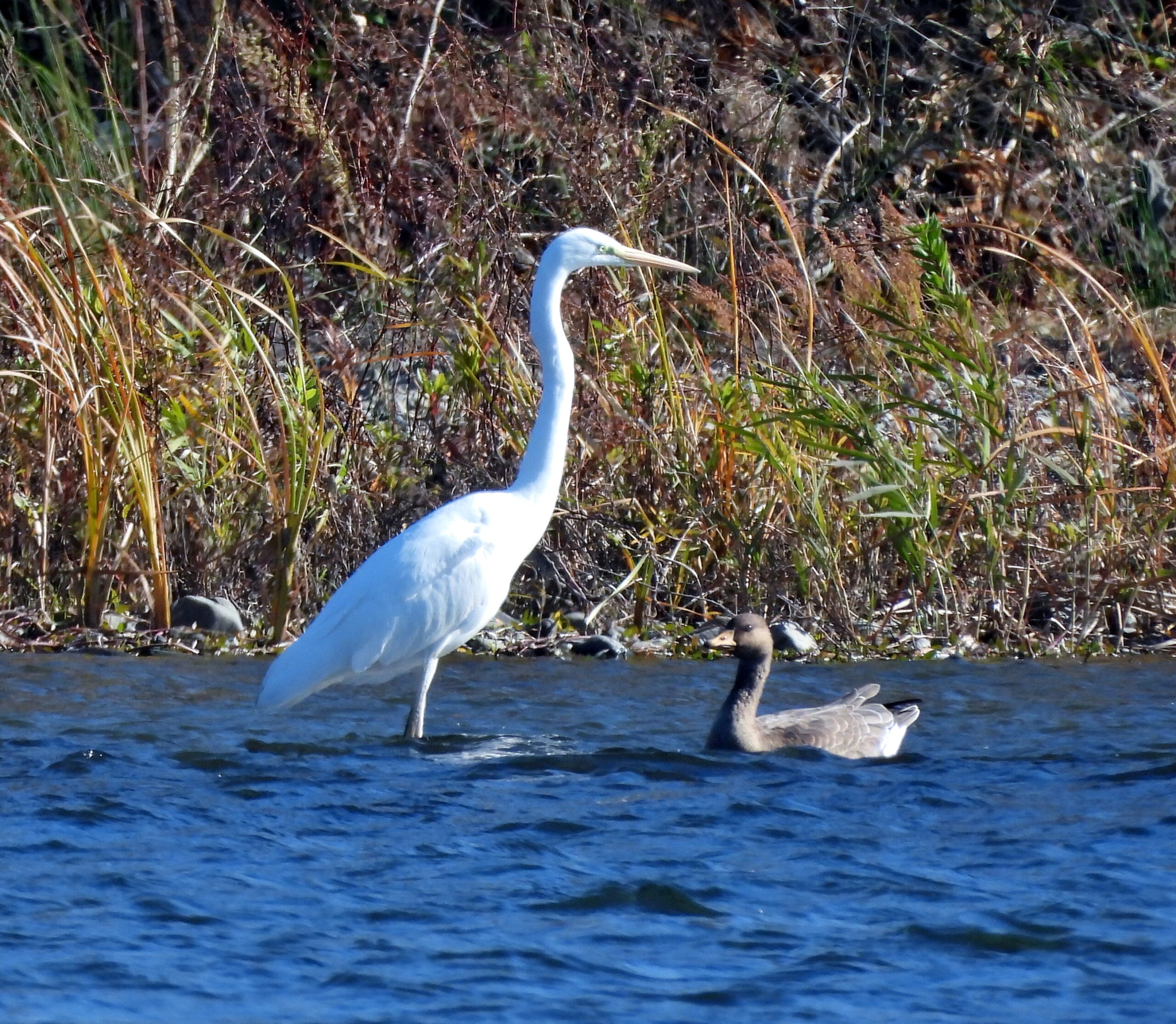 ダイサギ(チュウサギ?)とオオヒシクイ(マガン?)