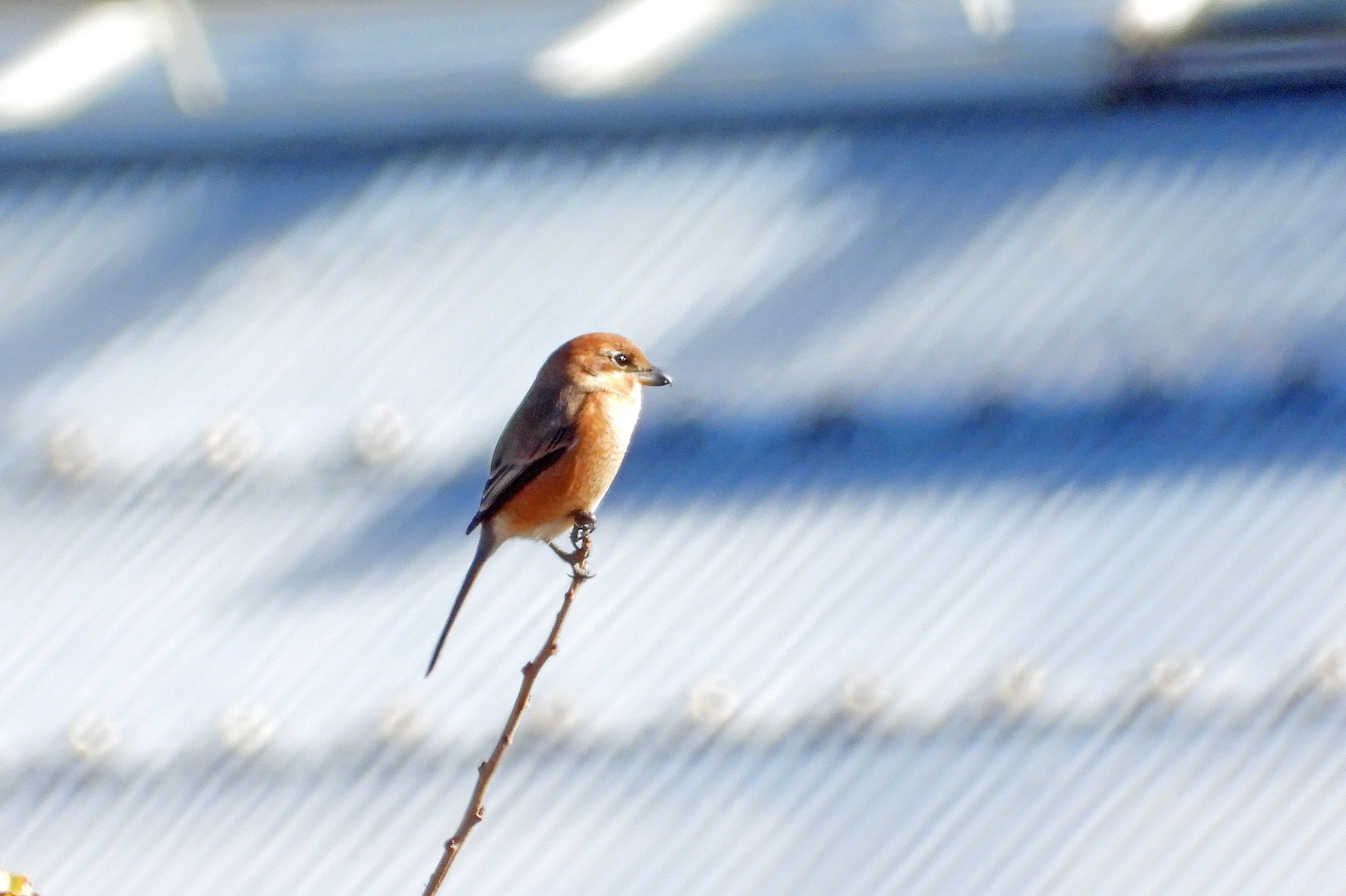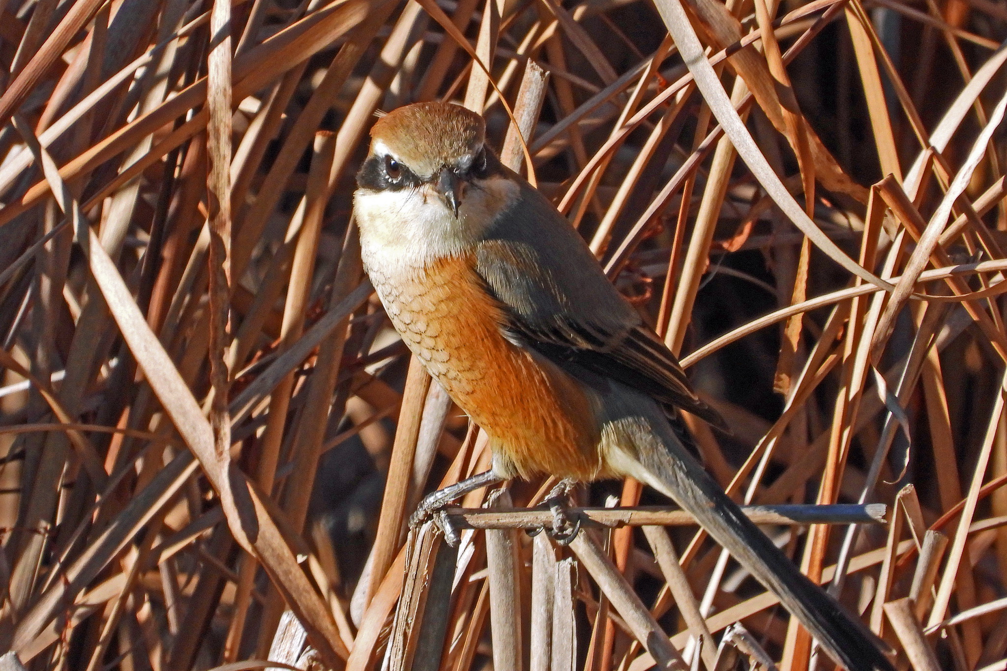 撮り終わると、いきなり草むらから鳥が飛び出してきて、目の前に留まりました。