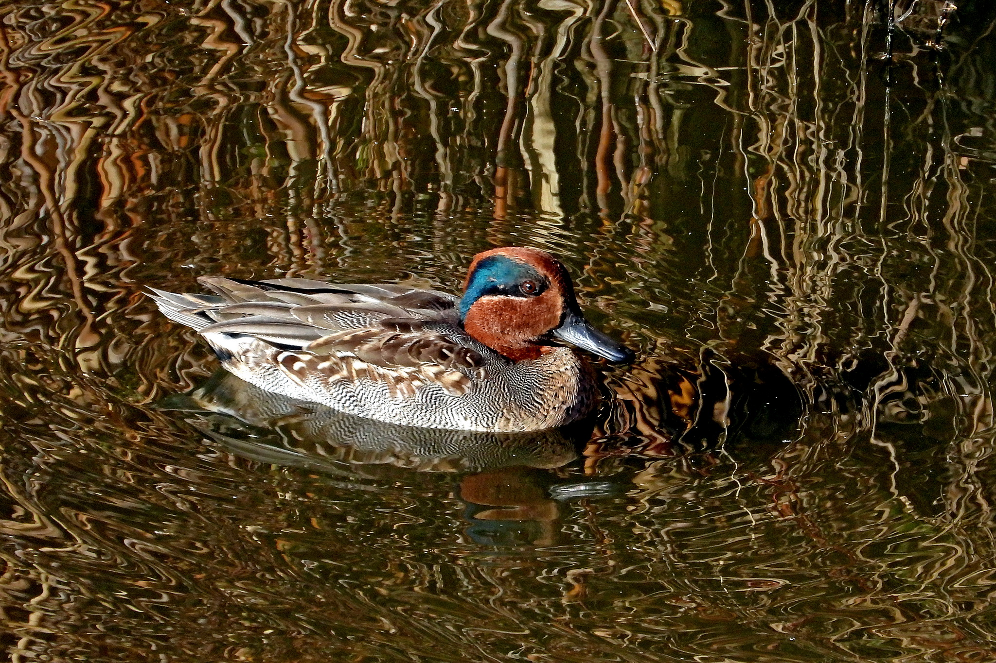 撮り終わると、スルスルと「コガモ」のオスが出てきました。