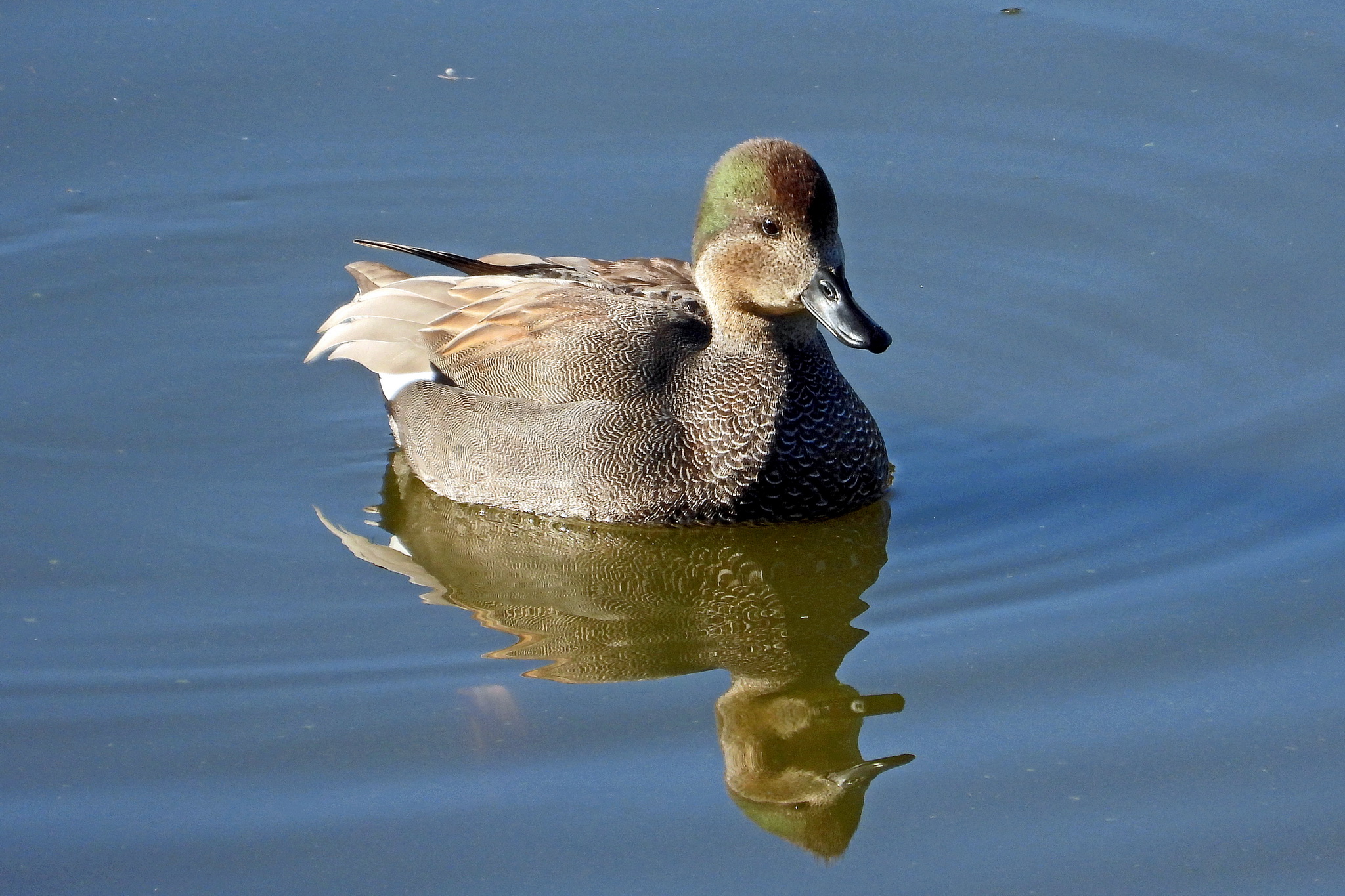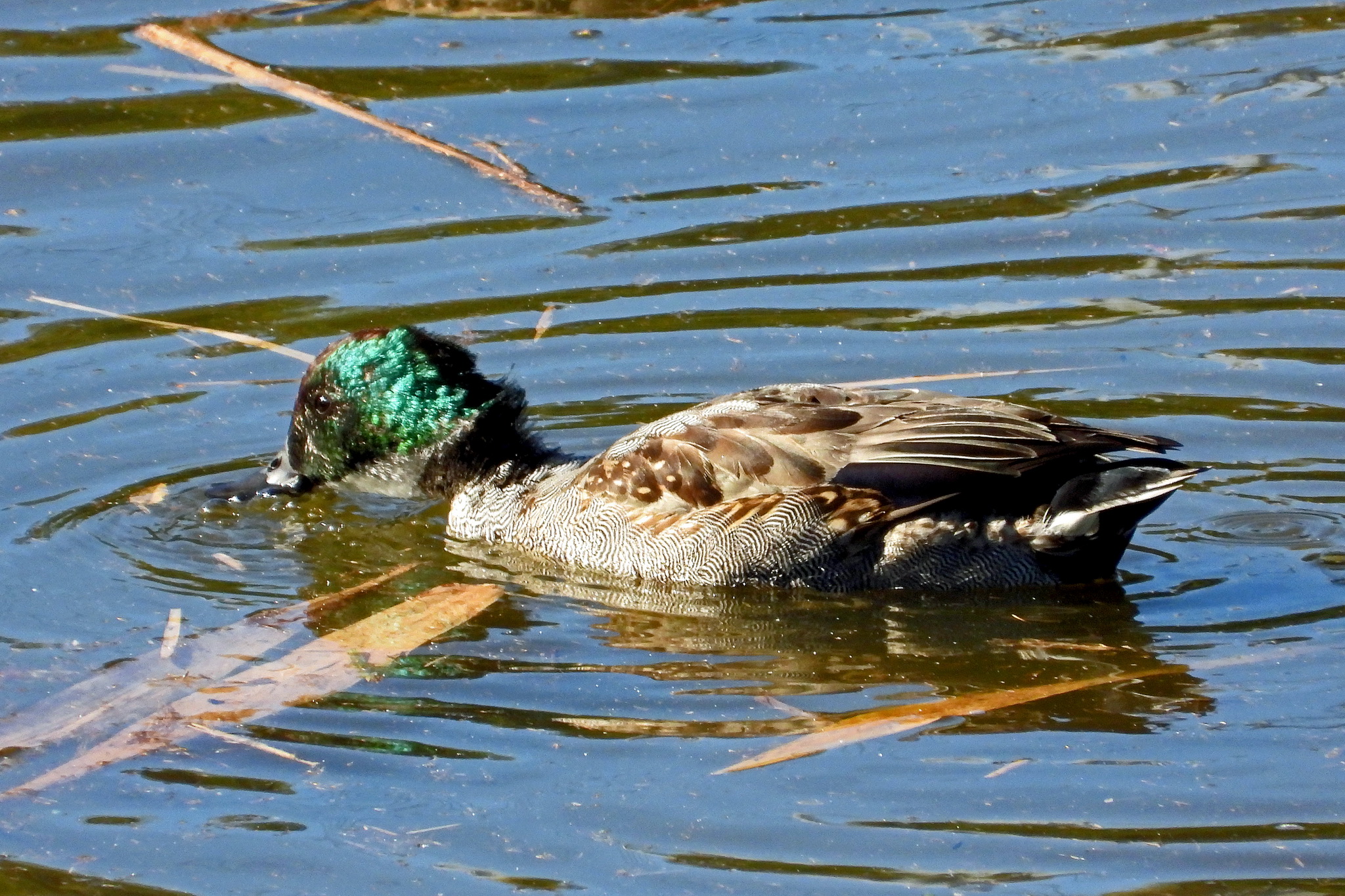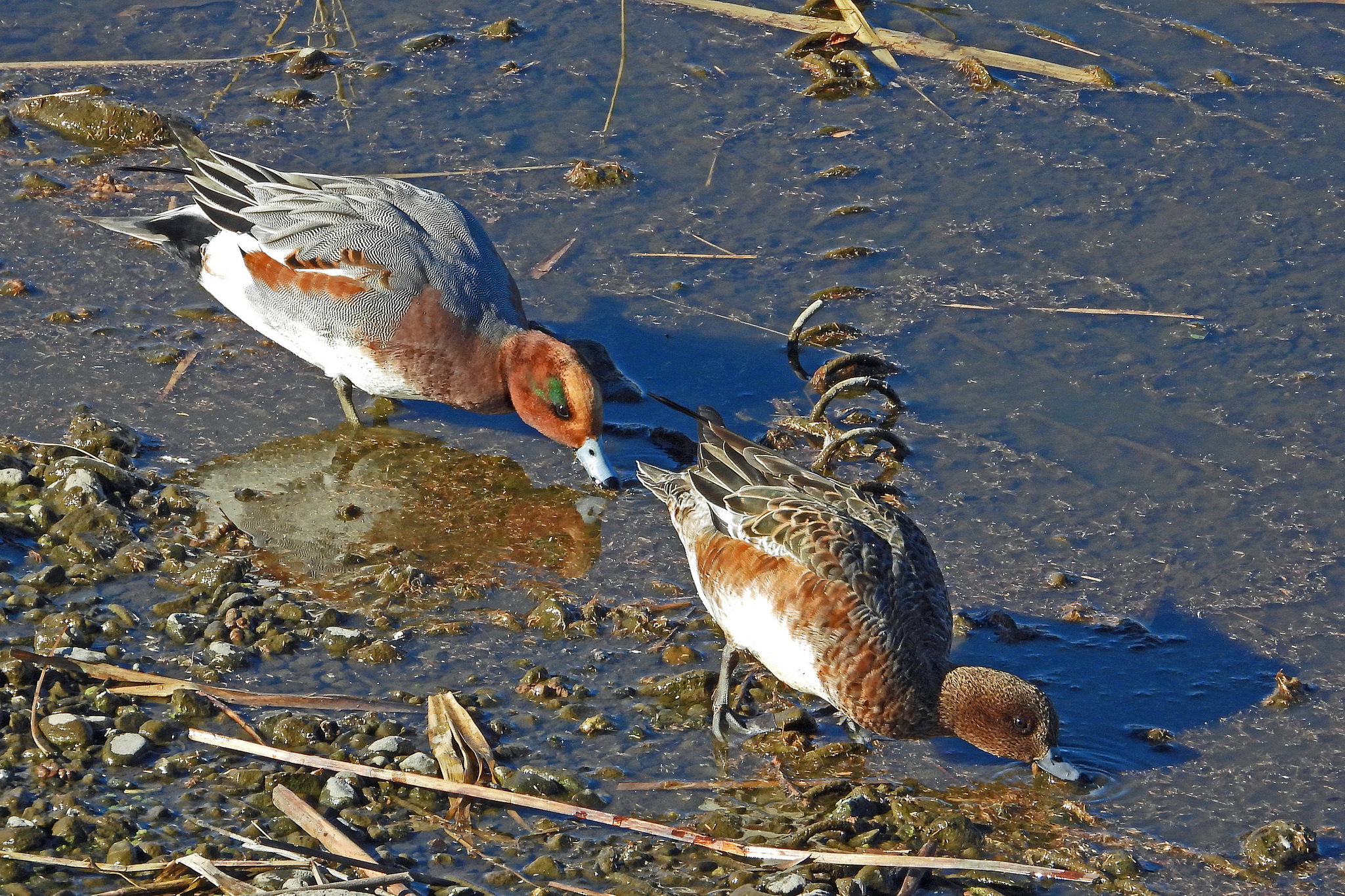 こちらはカップルらしき「ヒドリガモ」ですね。