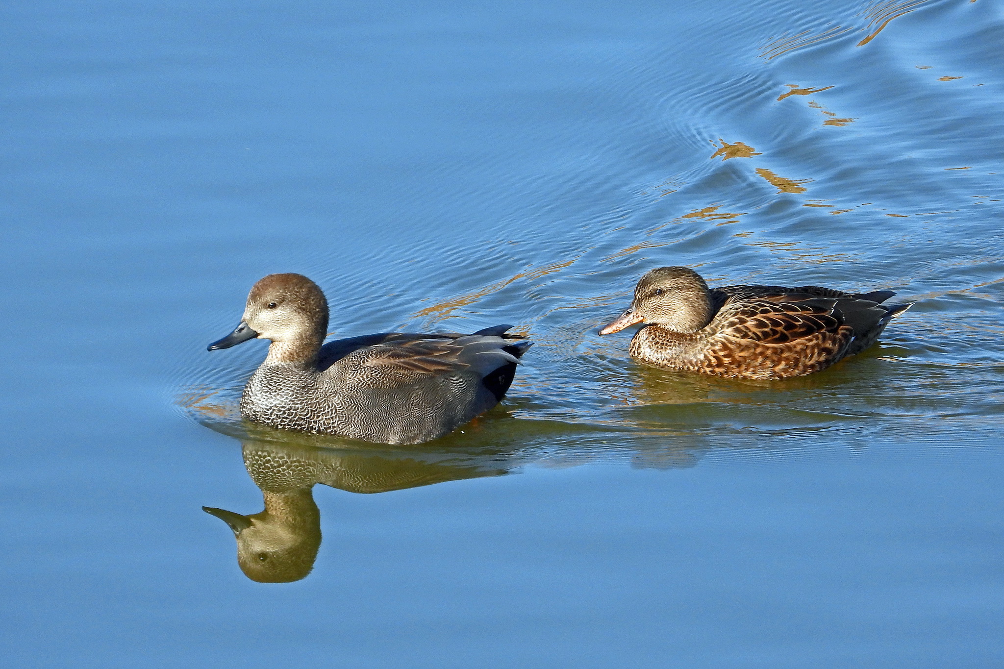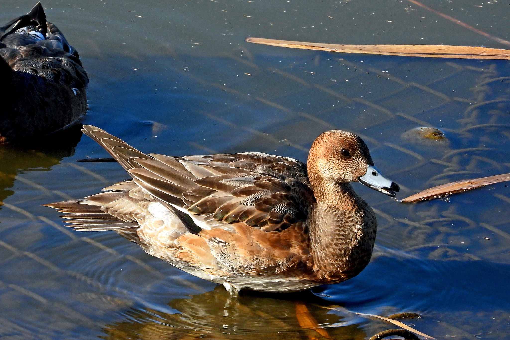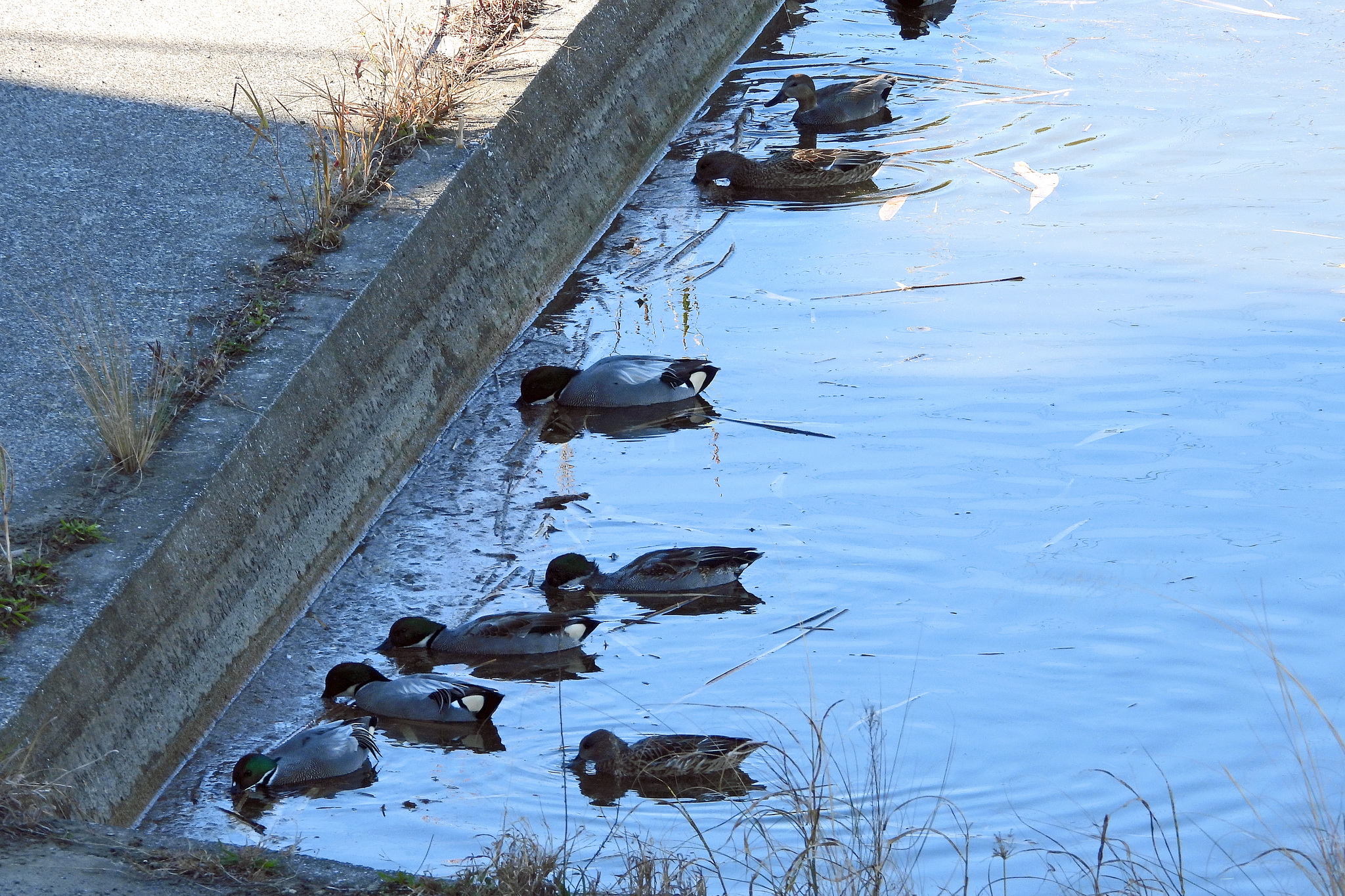 こちらはカップルらしき「ヒドリガモ」ですね。