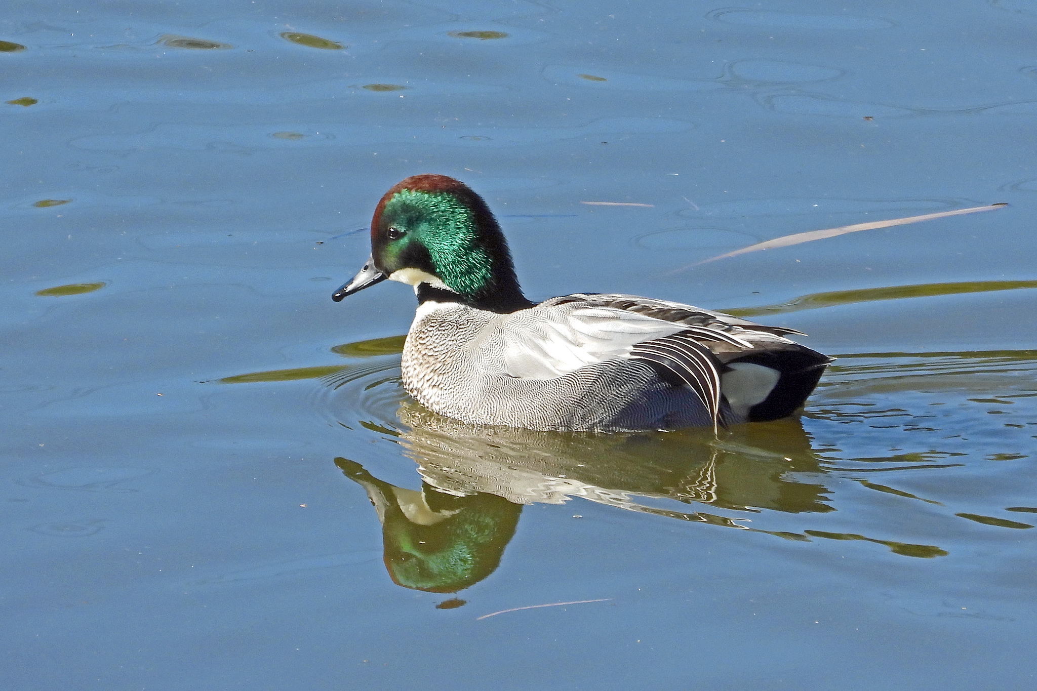 おっ、換羽が完了したオスの「ヨシガモ」です。