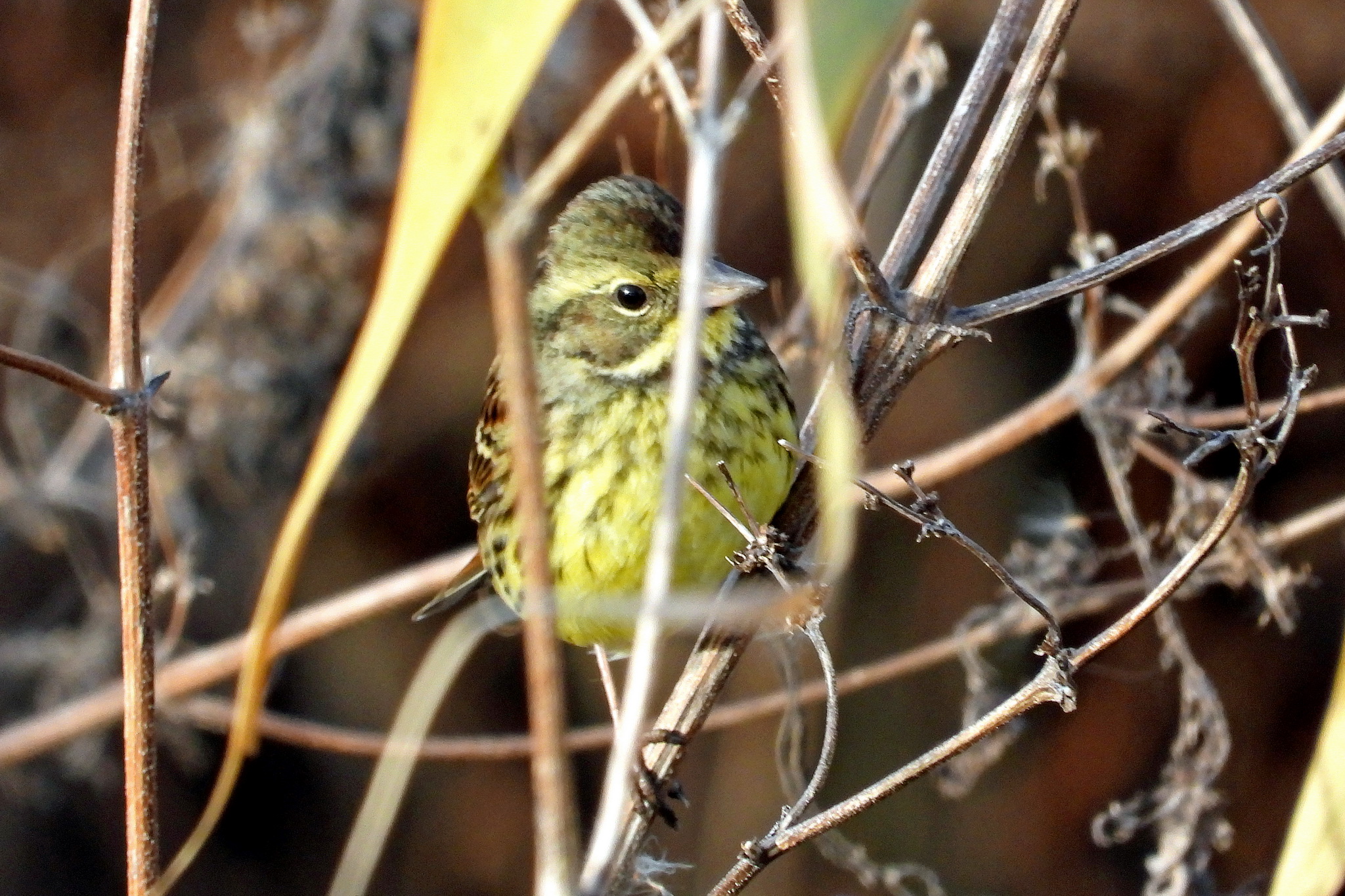 おっ、一瞬「アオジ」が姿を見せてくれました。