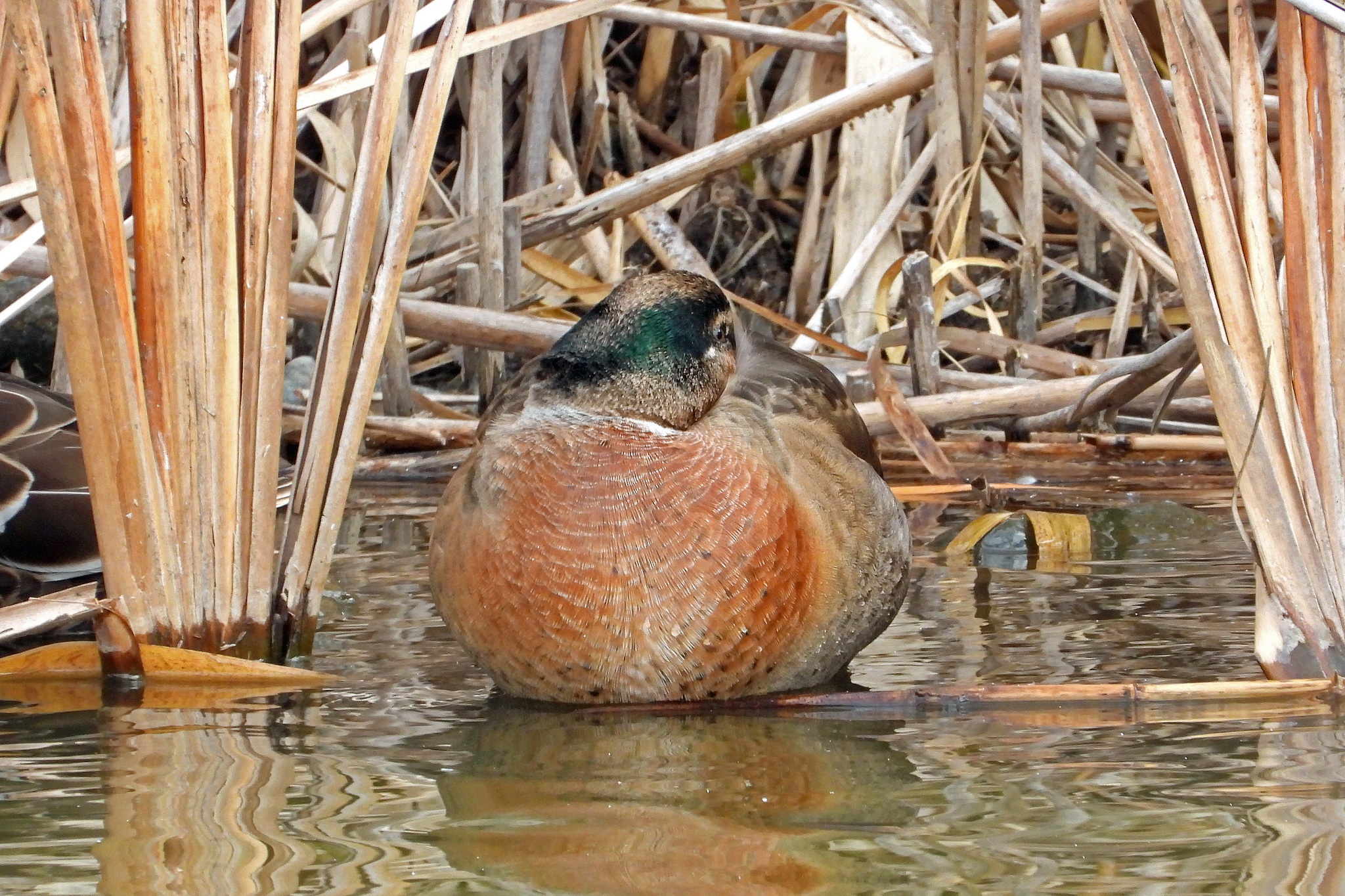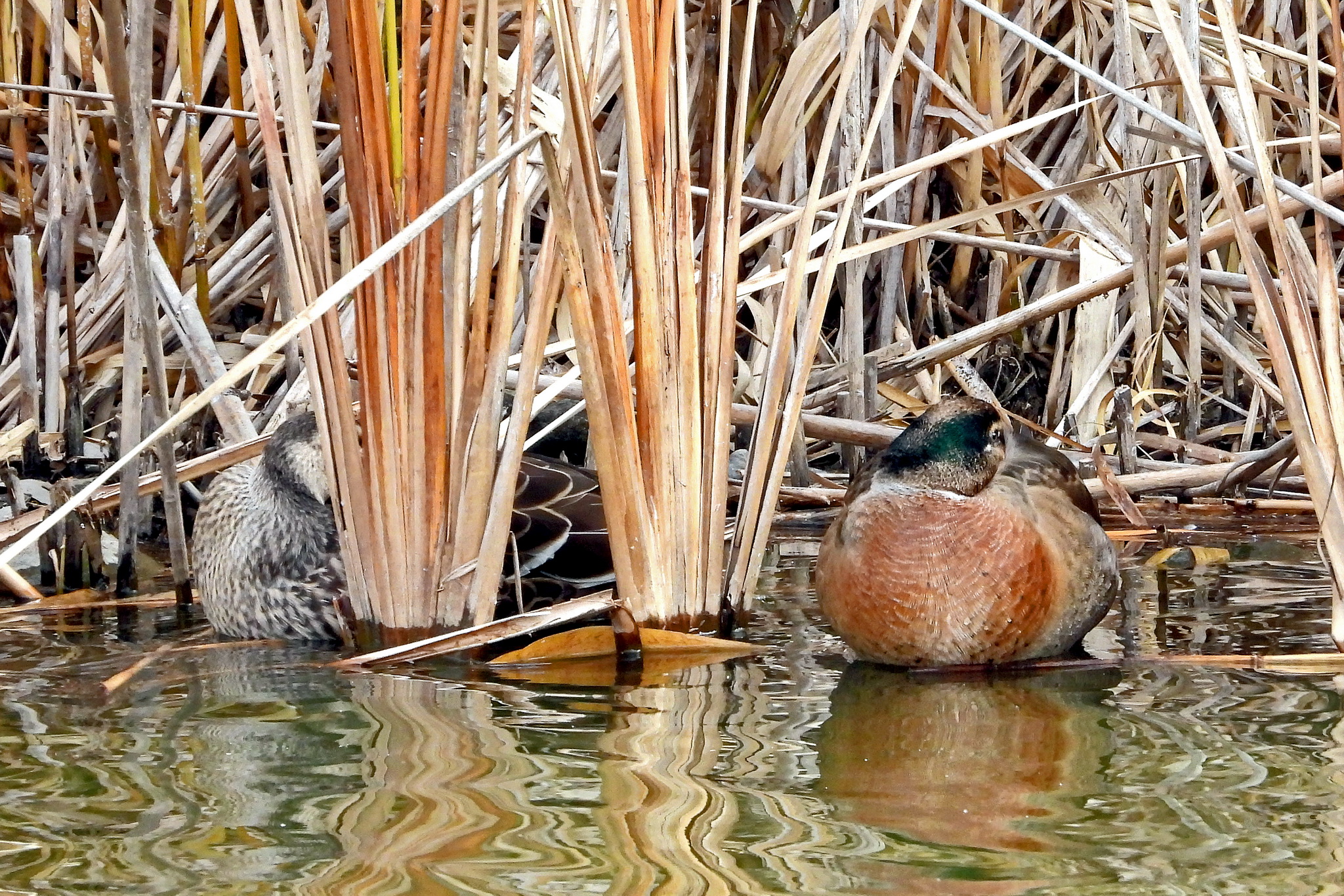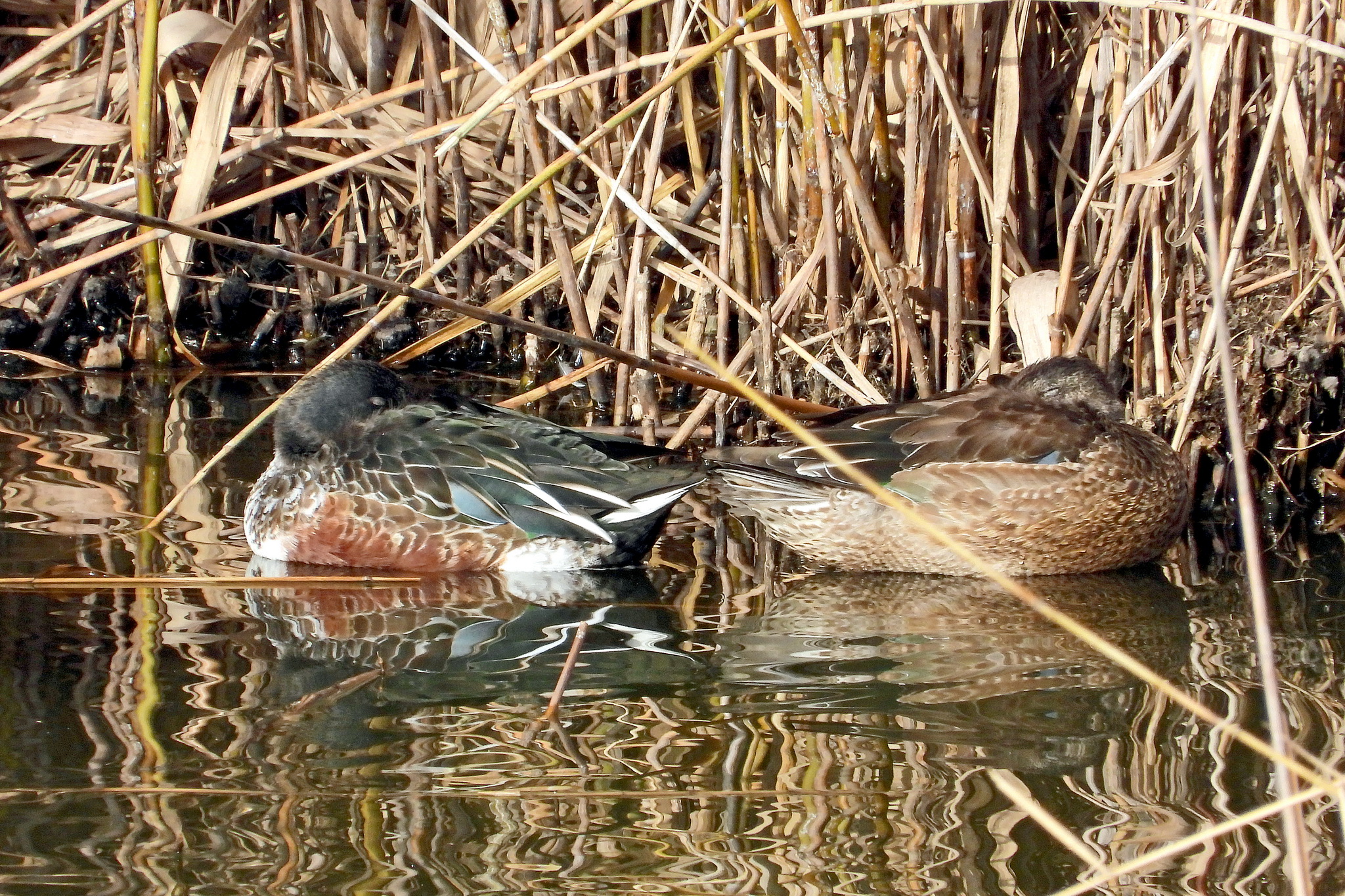 カップルらしき「ハシビロガモ」がうずくまってました。