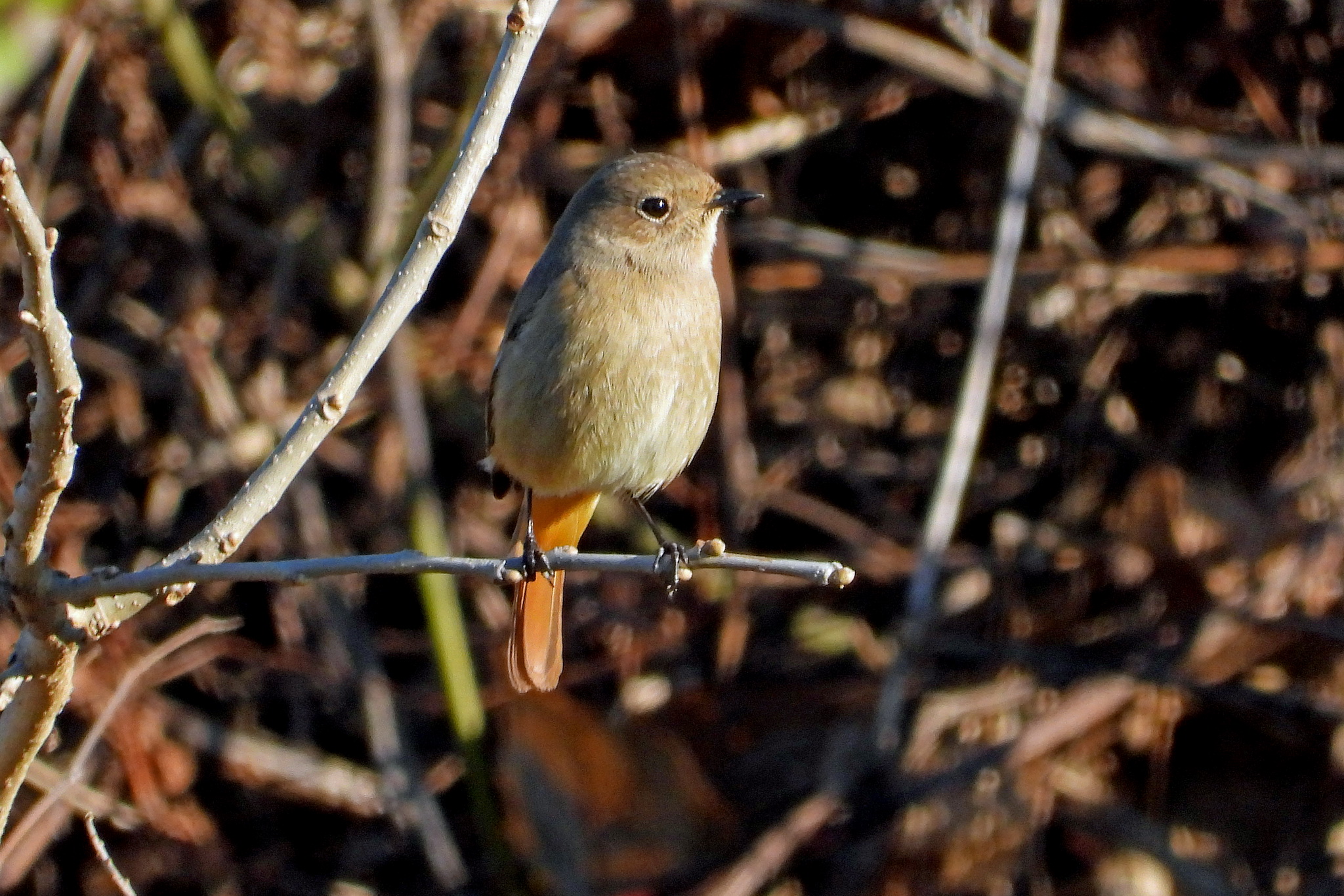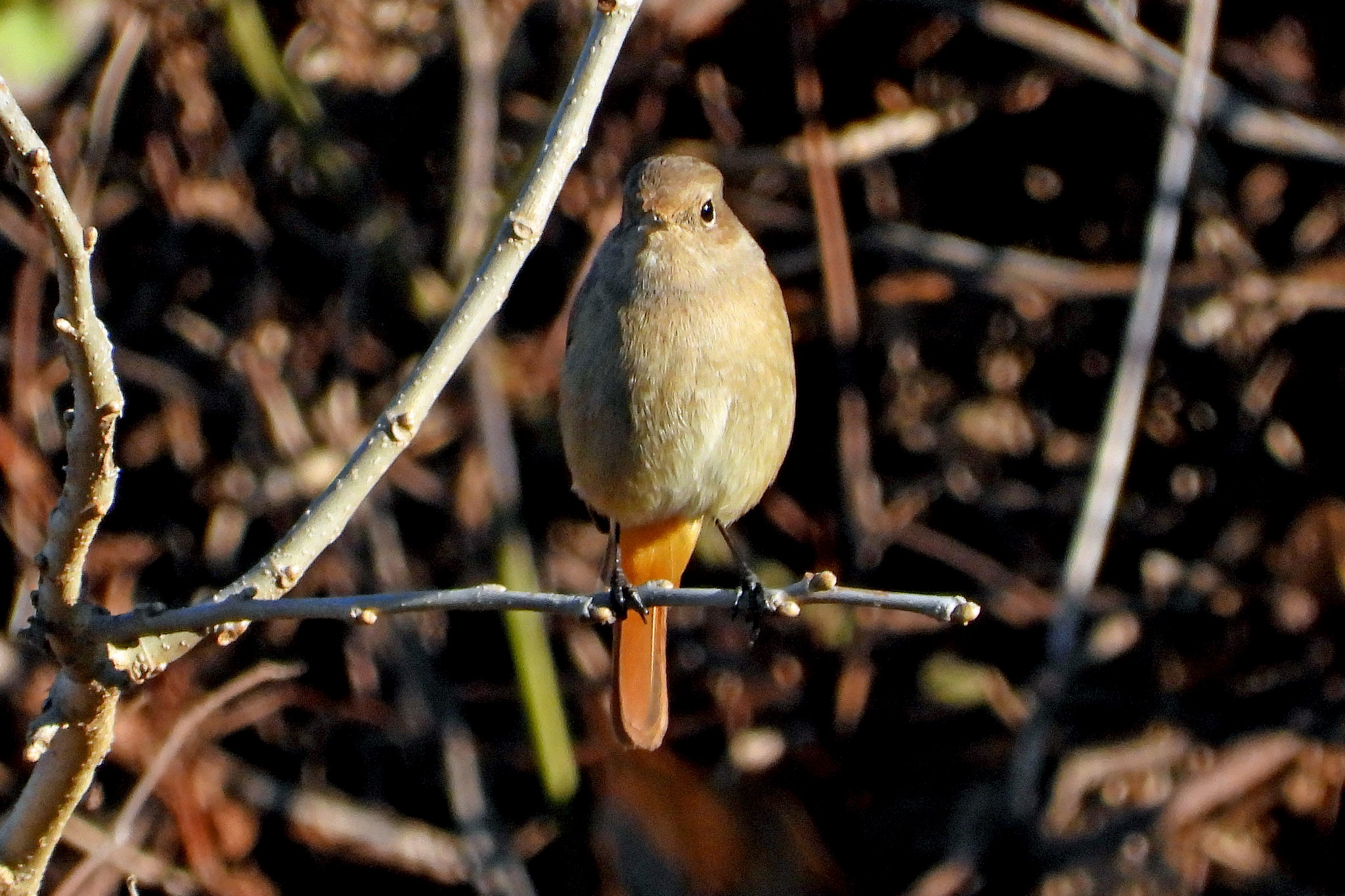 あっちに居るのは「ジョウビタキ」のメスですね。