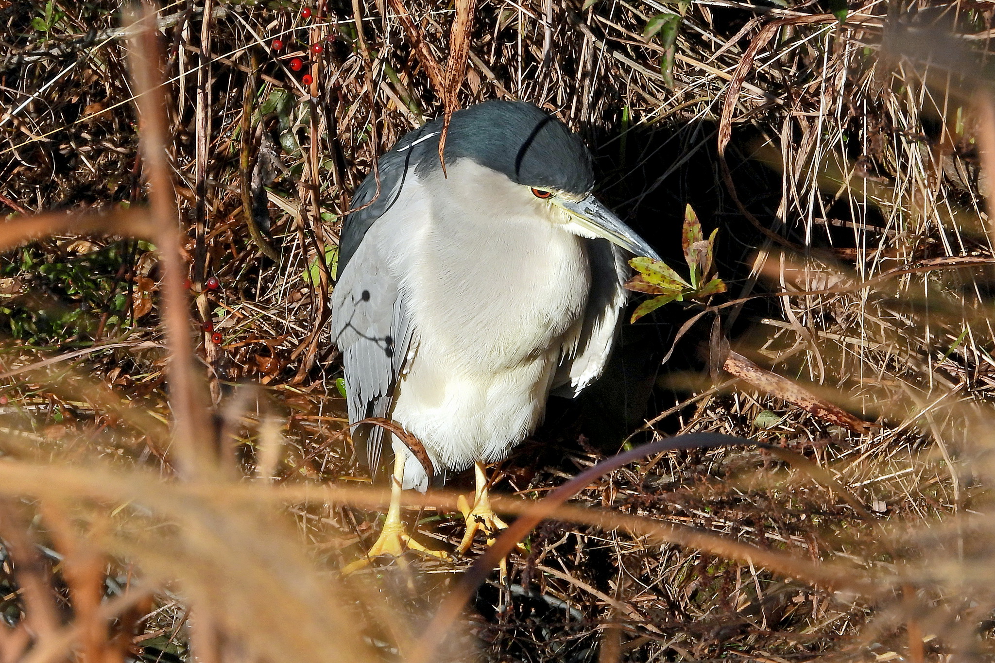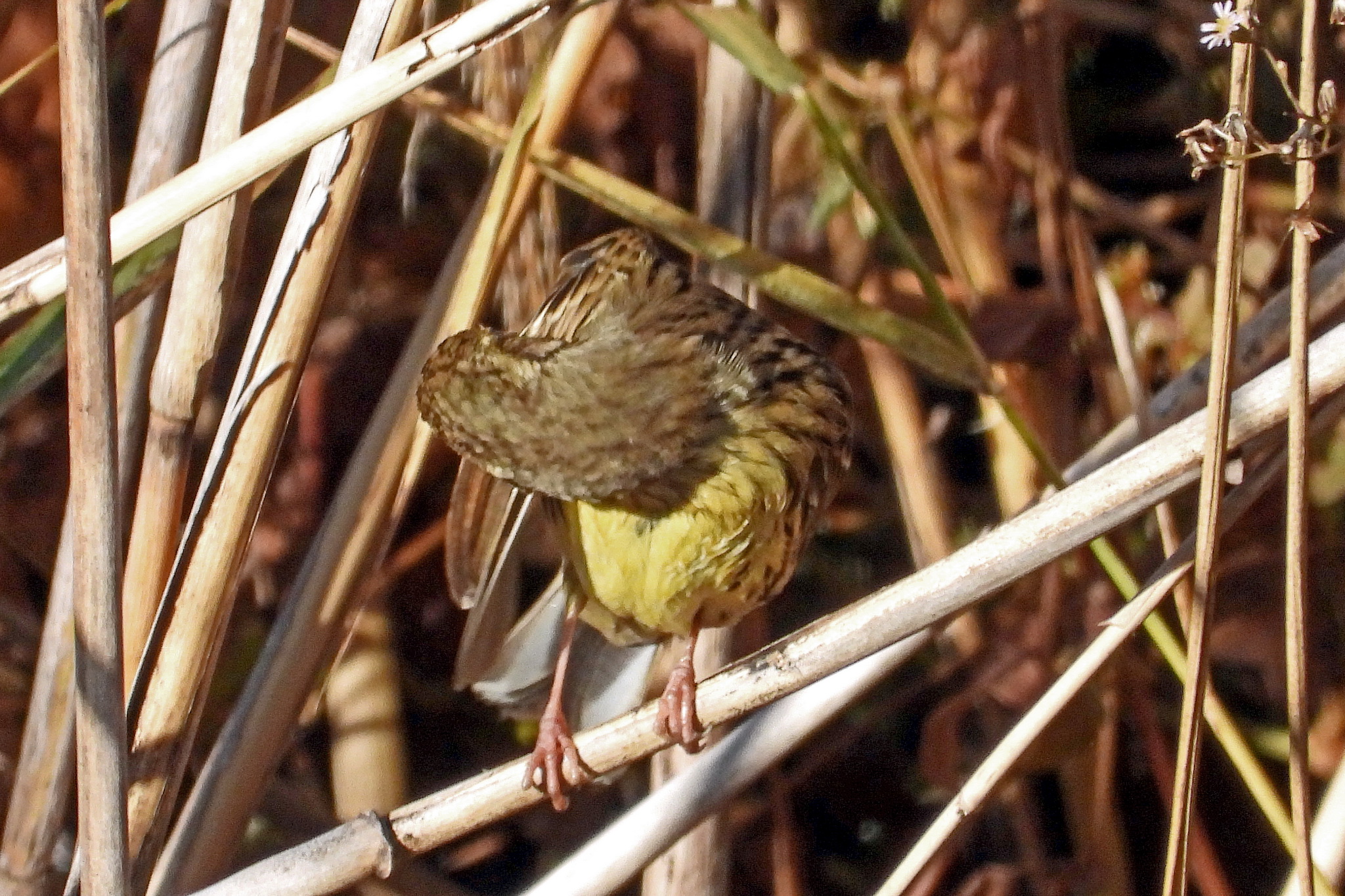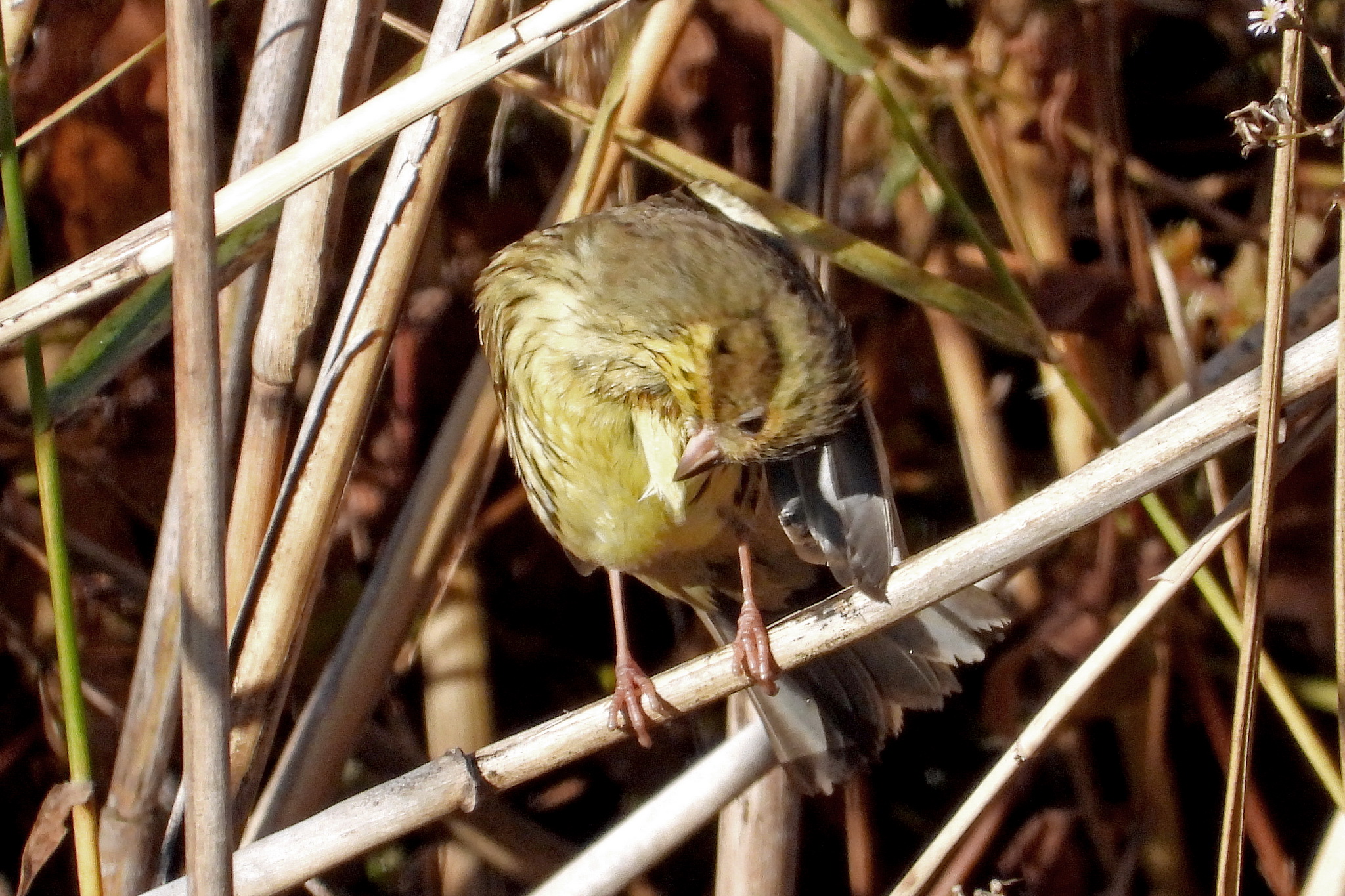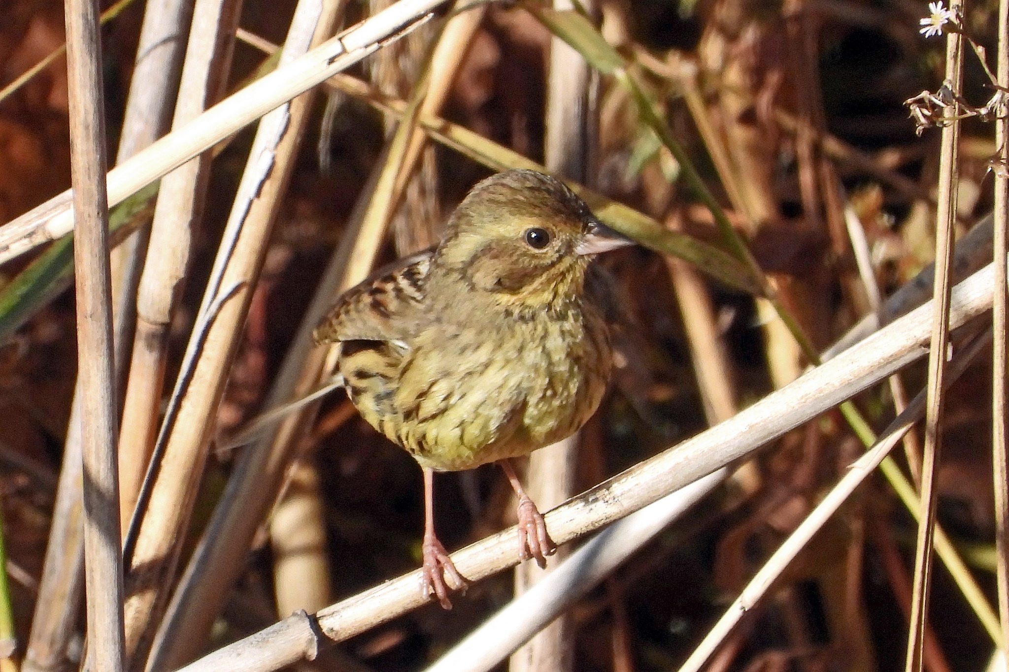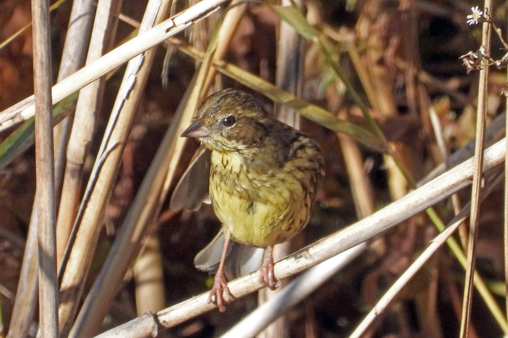 昨日の雨で、葦原の中に潜んだままでいるのかな。