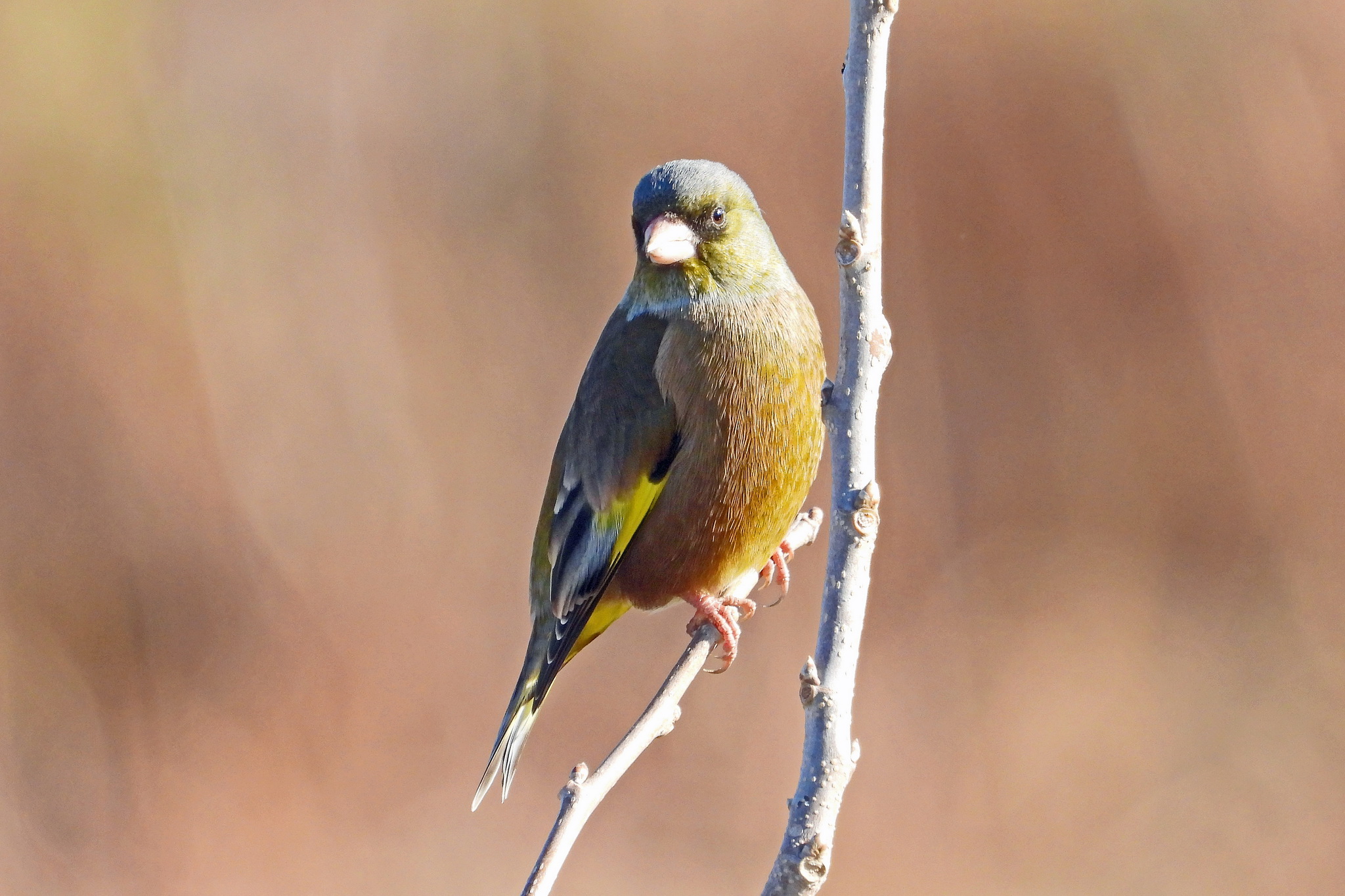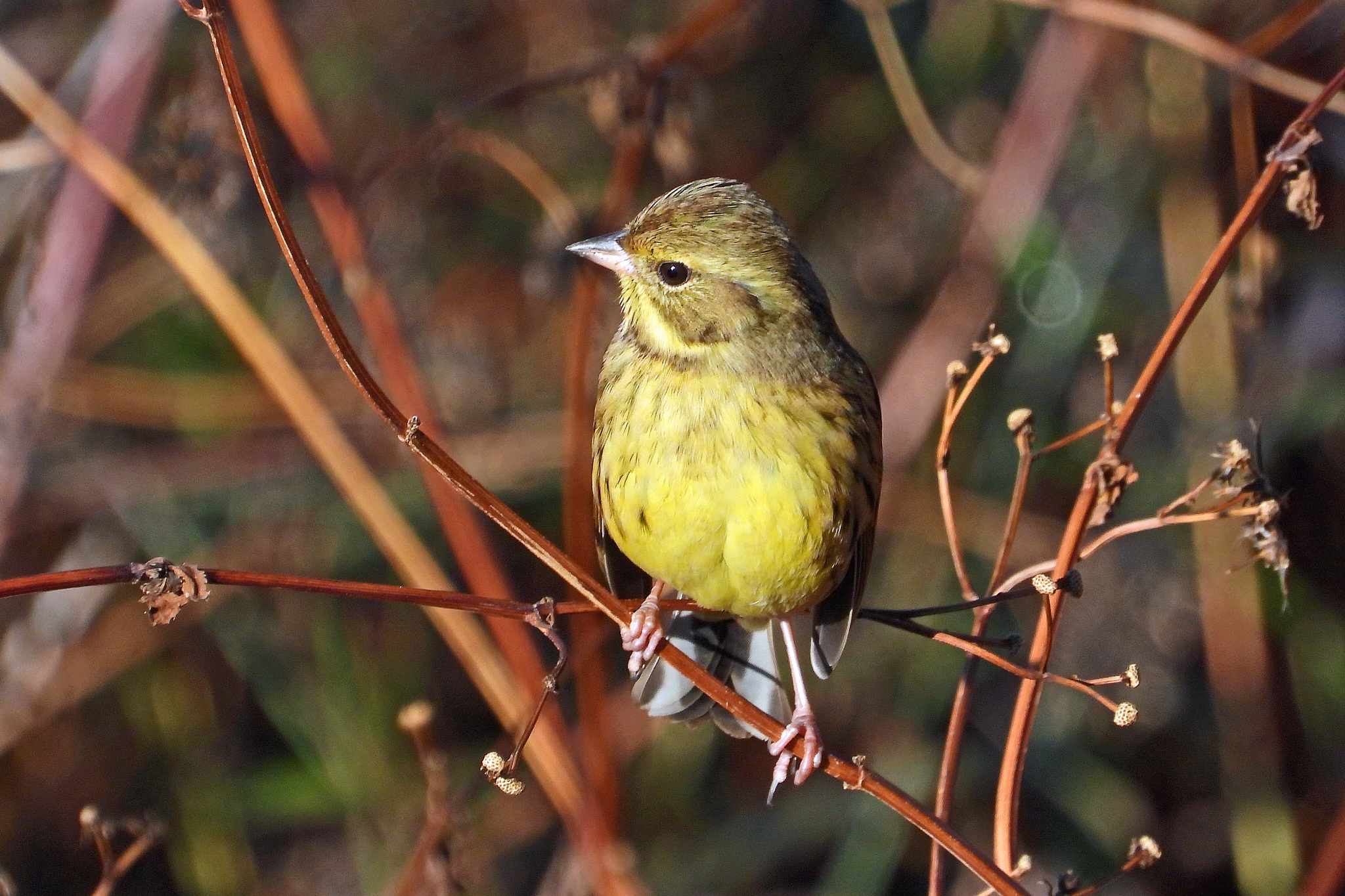 おっ、「ホオジロ」のオスが出てきて、食事を始めました。
