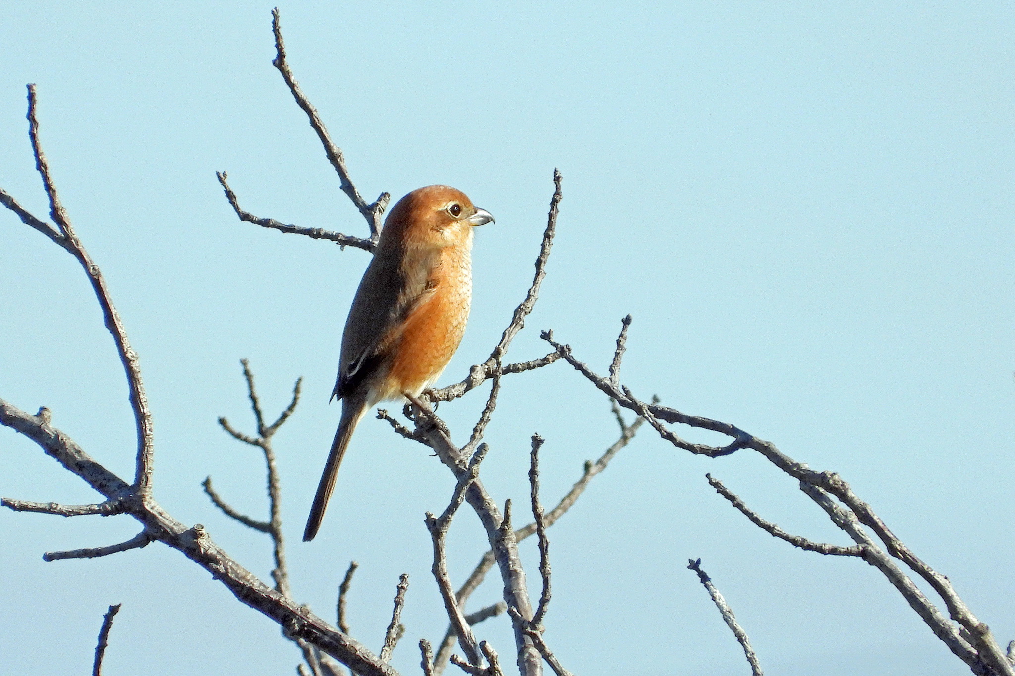 遠くの木にいるのは、たぶん「モズ」でしょう。