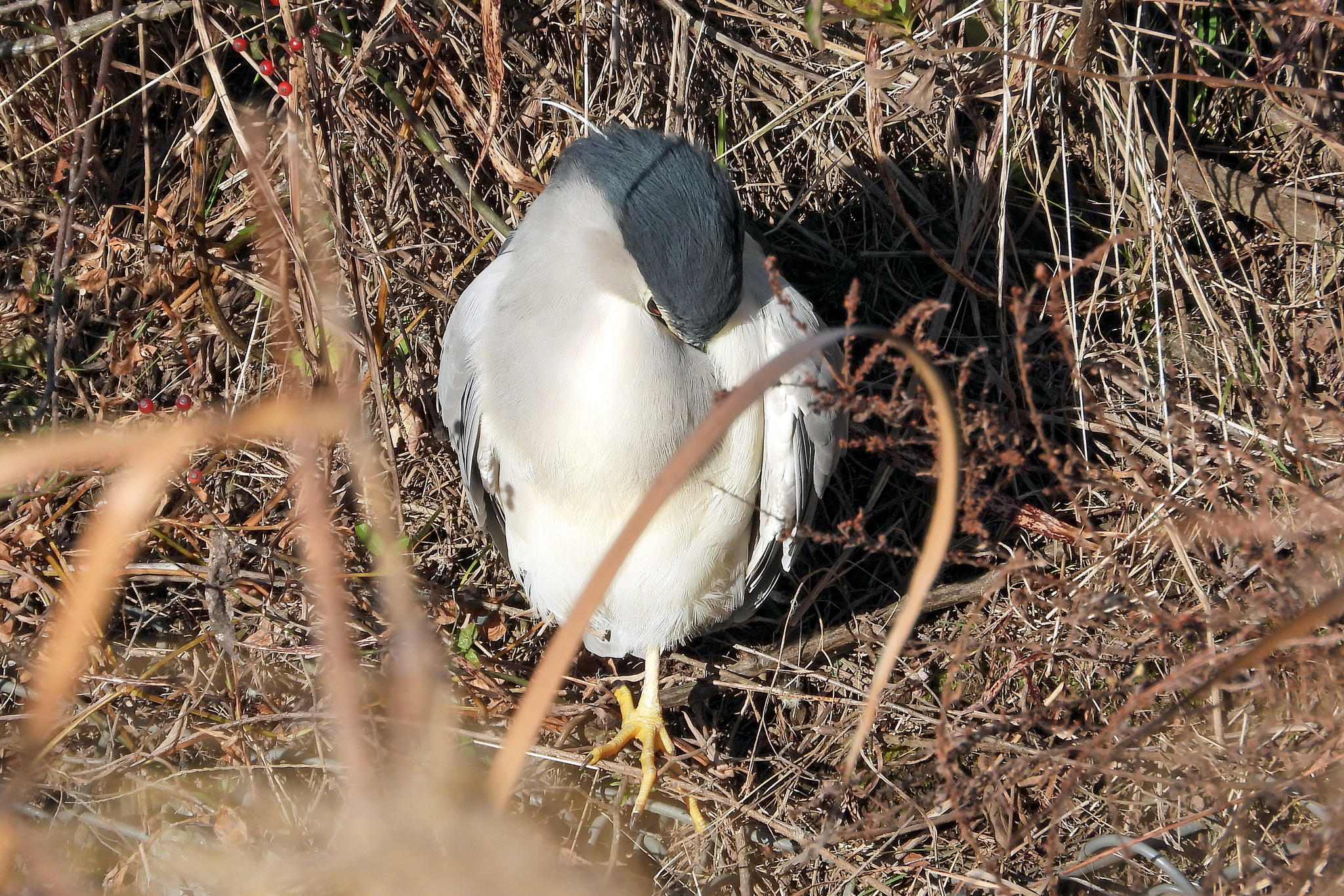 「ゴイサギ」が居たところに戻ってくると、顔をうずめてました。