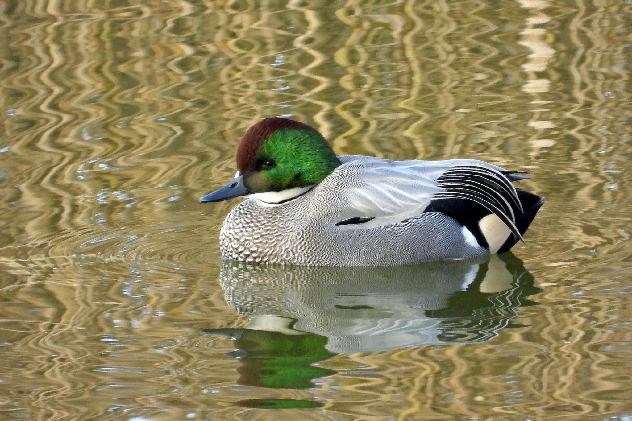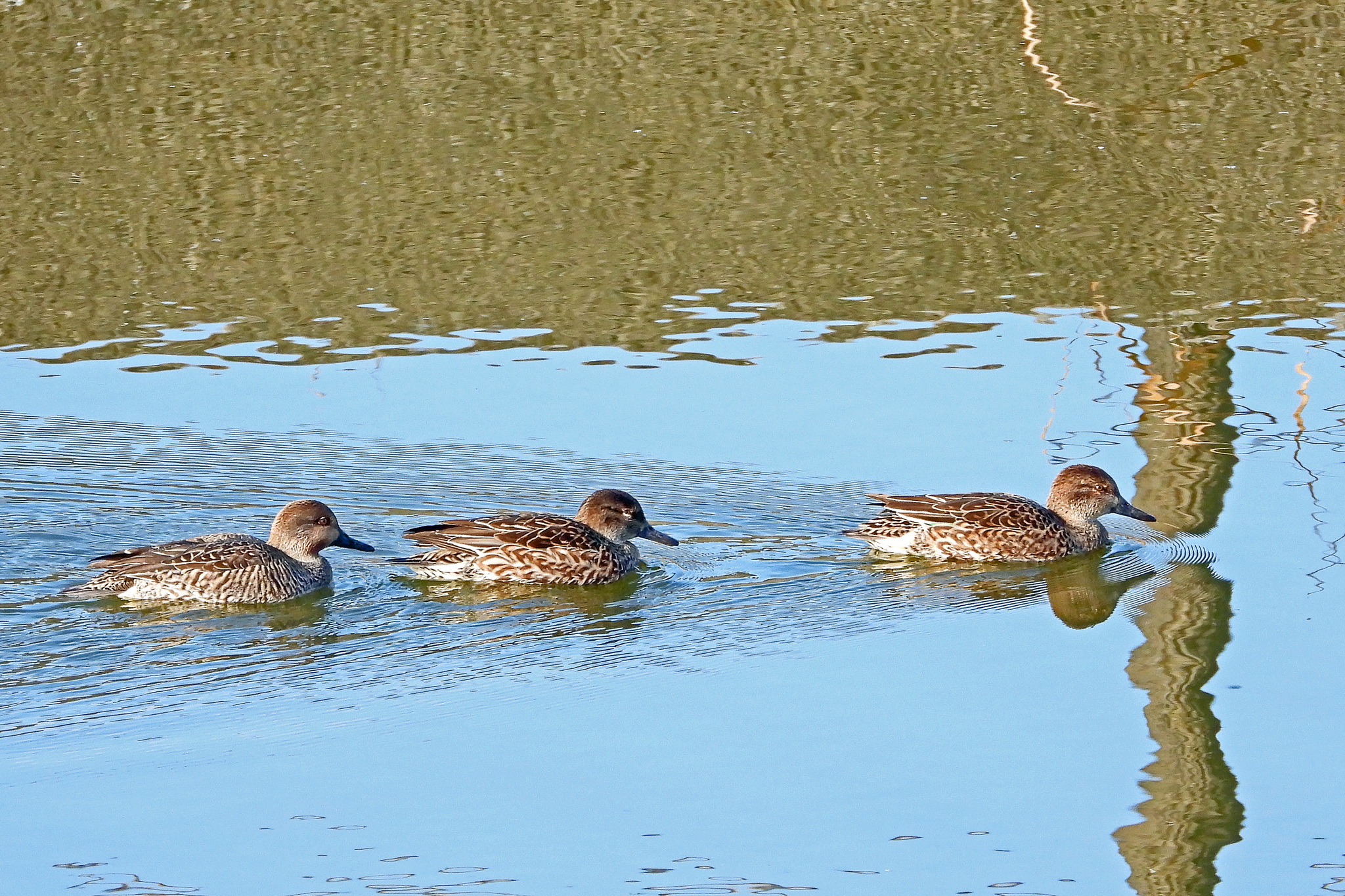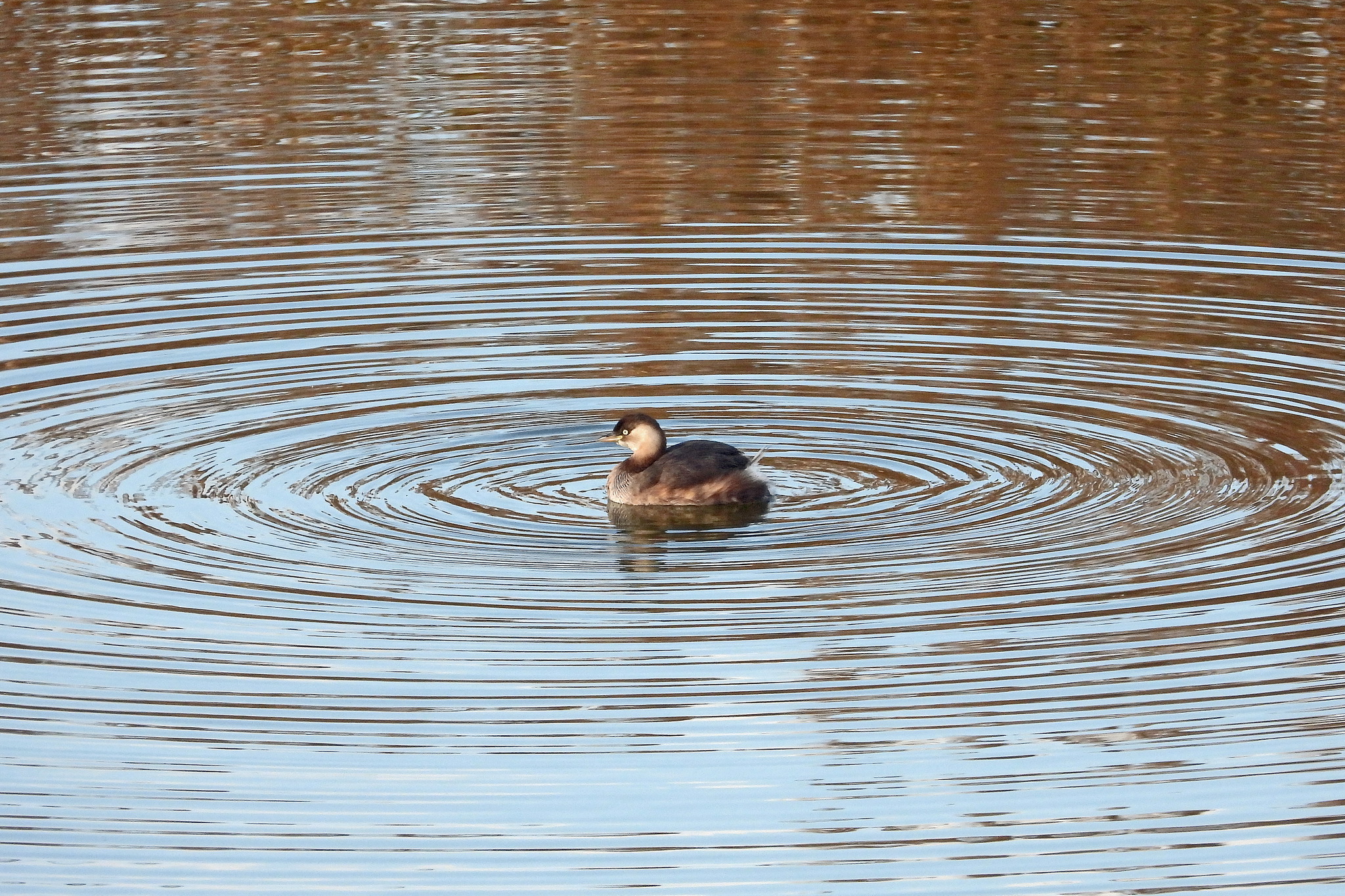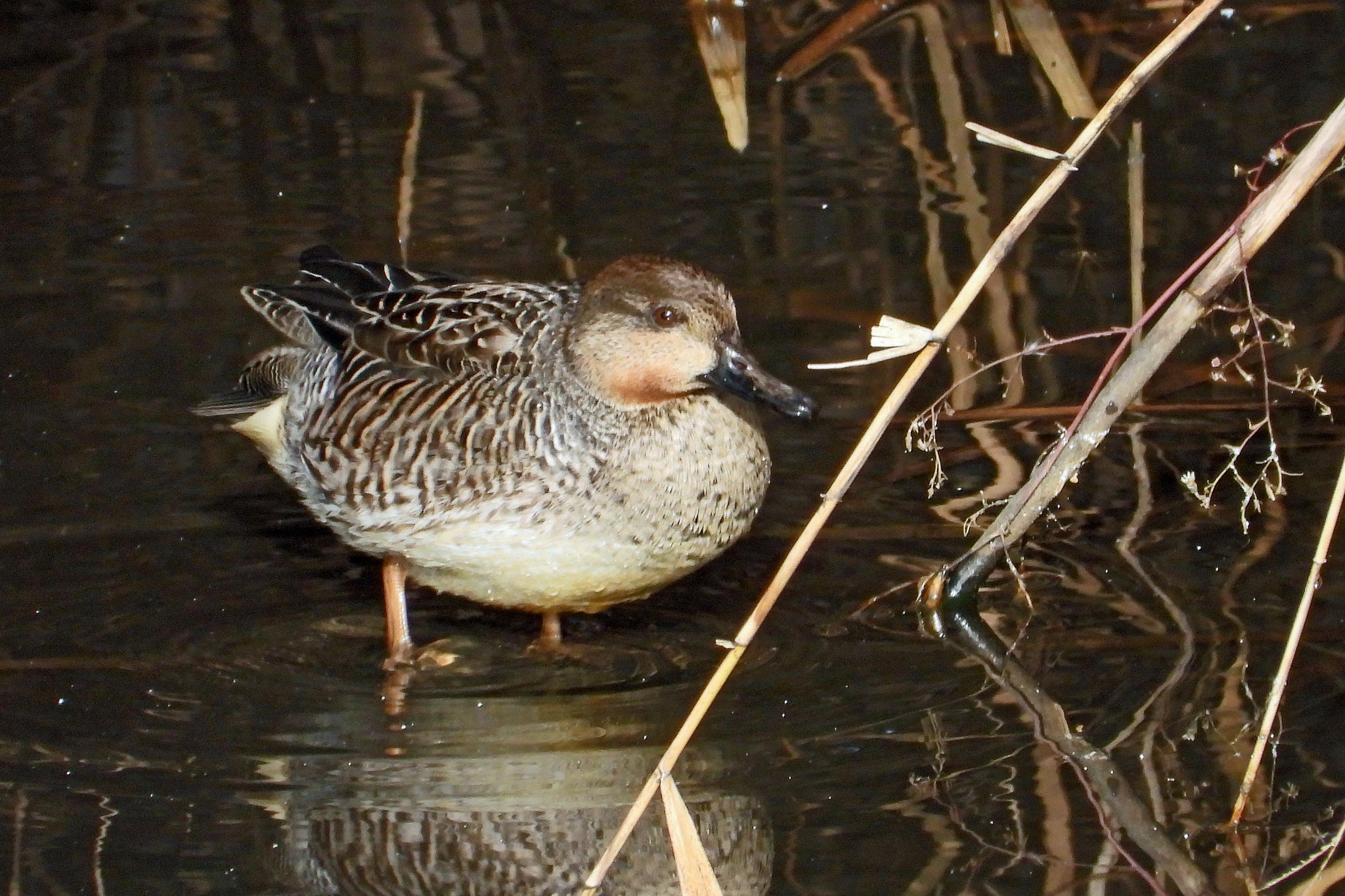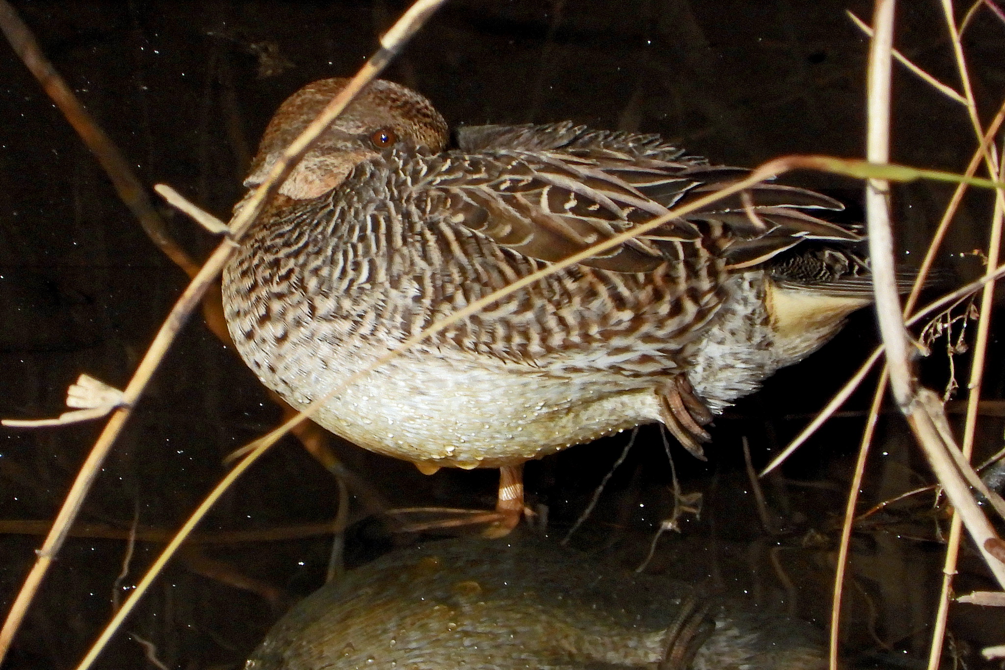 おっ、「コガモ」のメスらしきのが飛んで来て、着水しました。