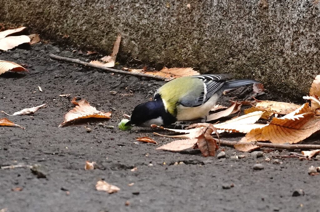 シジュウカラ 下に降りてきました よく見るとカメムシがいますね