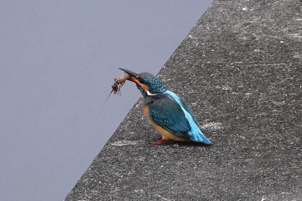 川ではカワセミが何かを捕まえ、呑み込むところでした 獲物は何だかわかりません