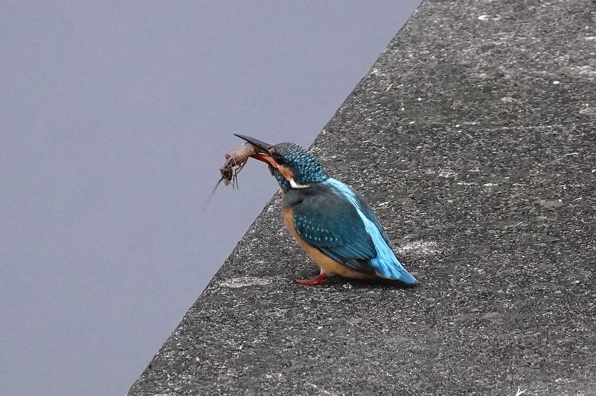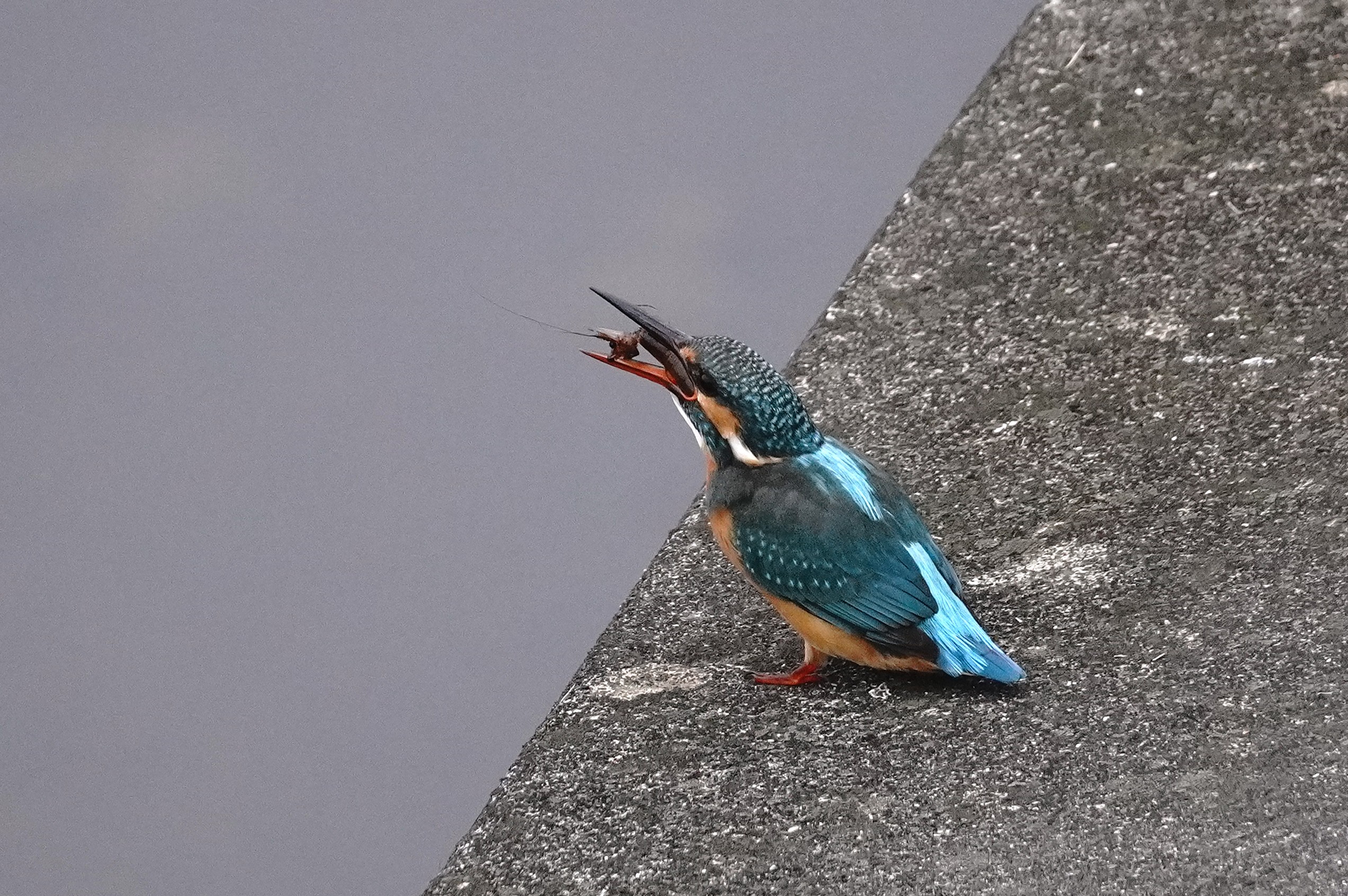 川ではカワセミが何かを捕まえ、呑み込むところでした 獲物は何だかわかりません