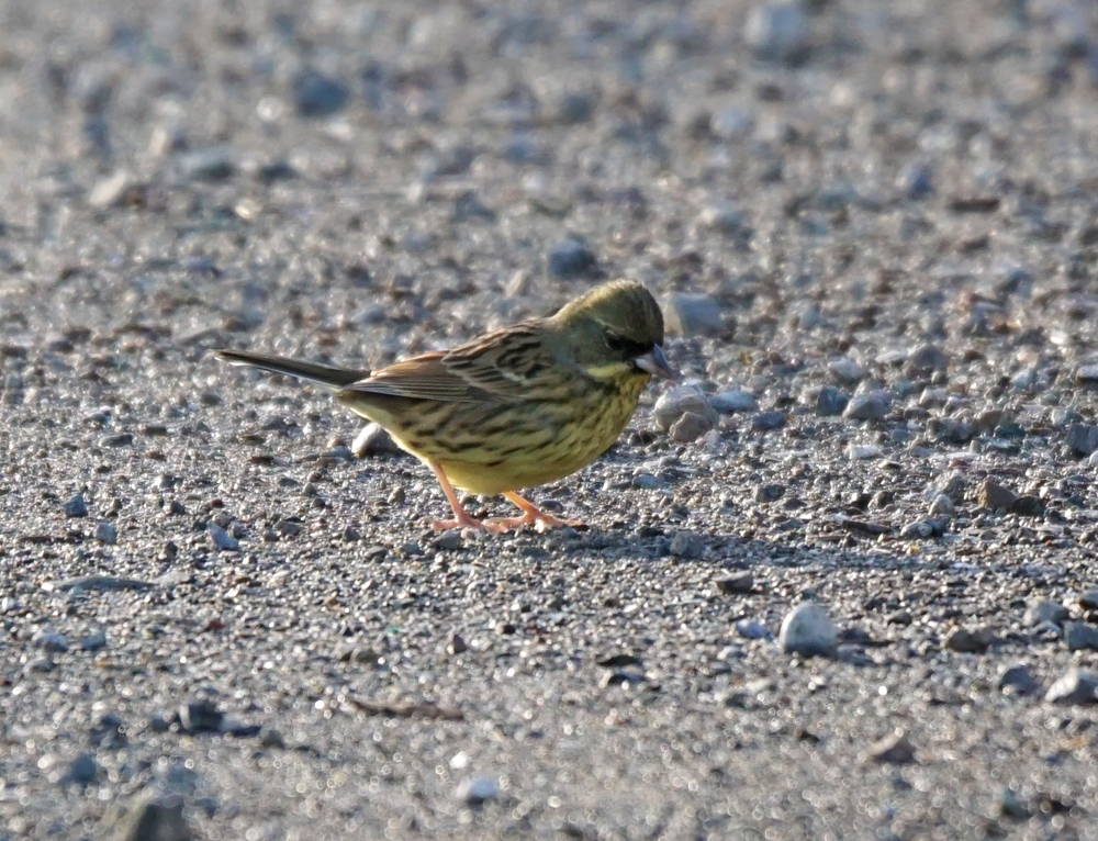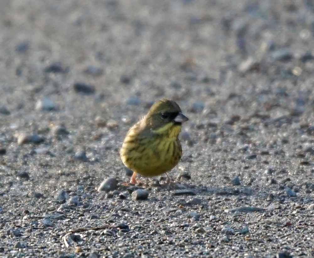 時間が無くなって来たのですが、帰路、遊水地を通過。 土手下の通路の真ん中にアオジが2羽、