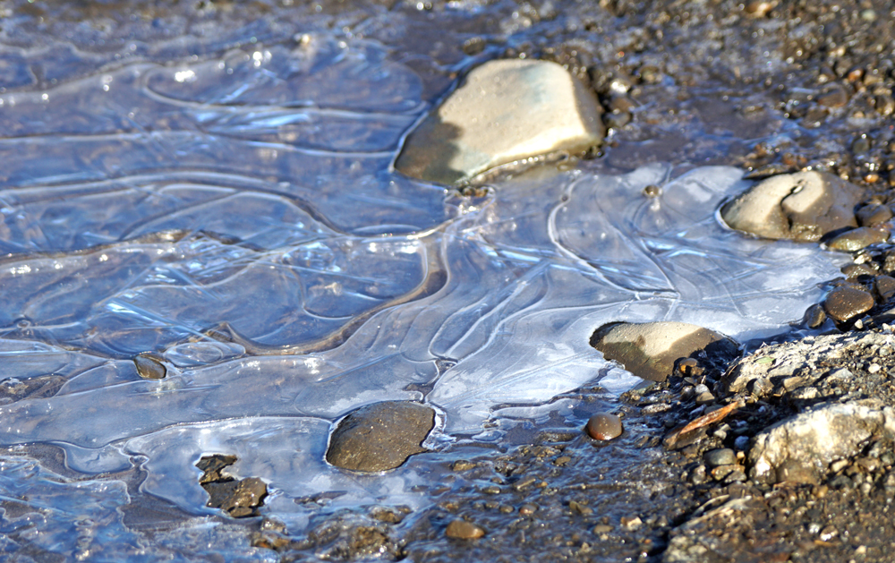 一昨日ジョウビタキが水浴びをしていた水溜まりは、今日は氷が張っていました。