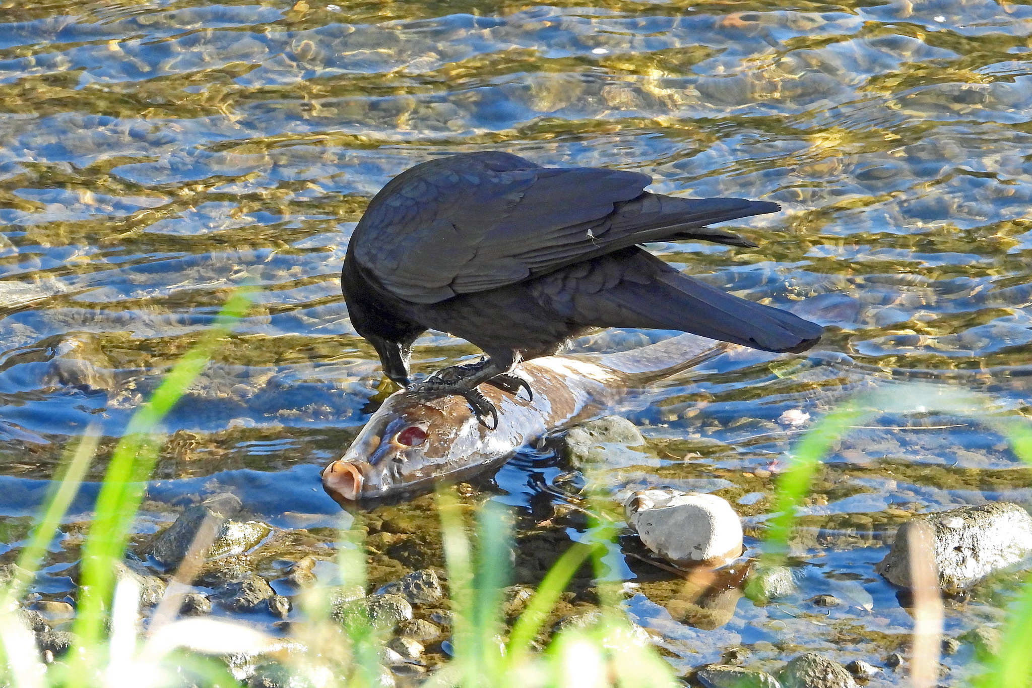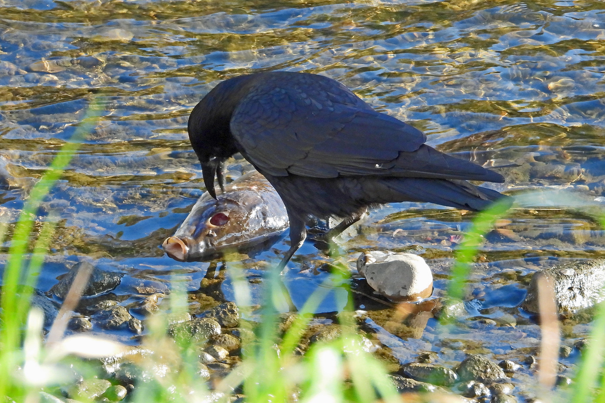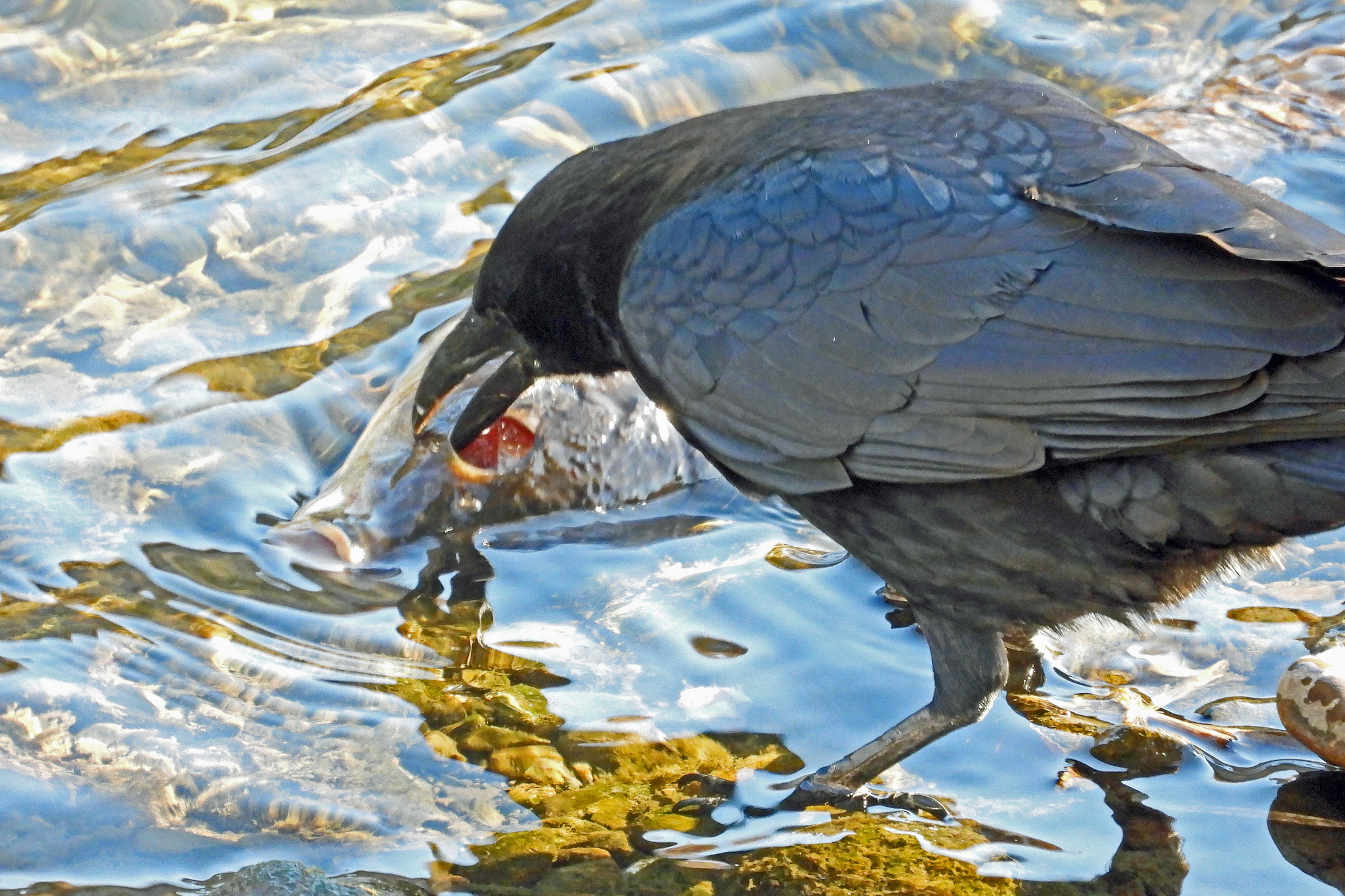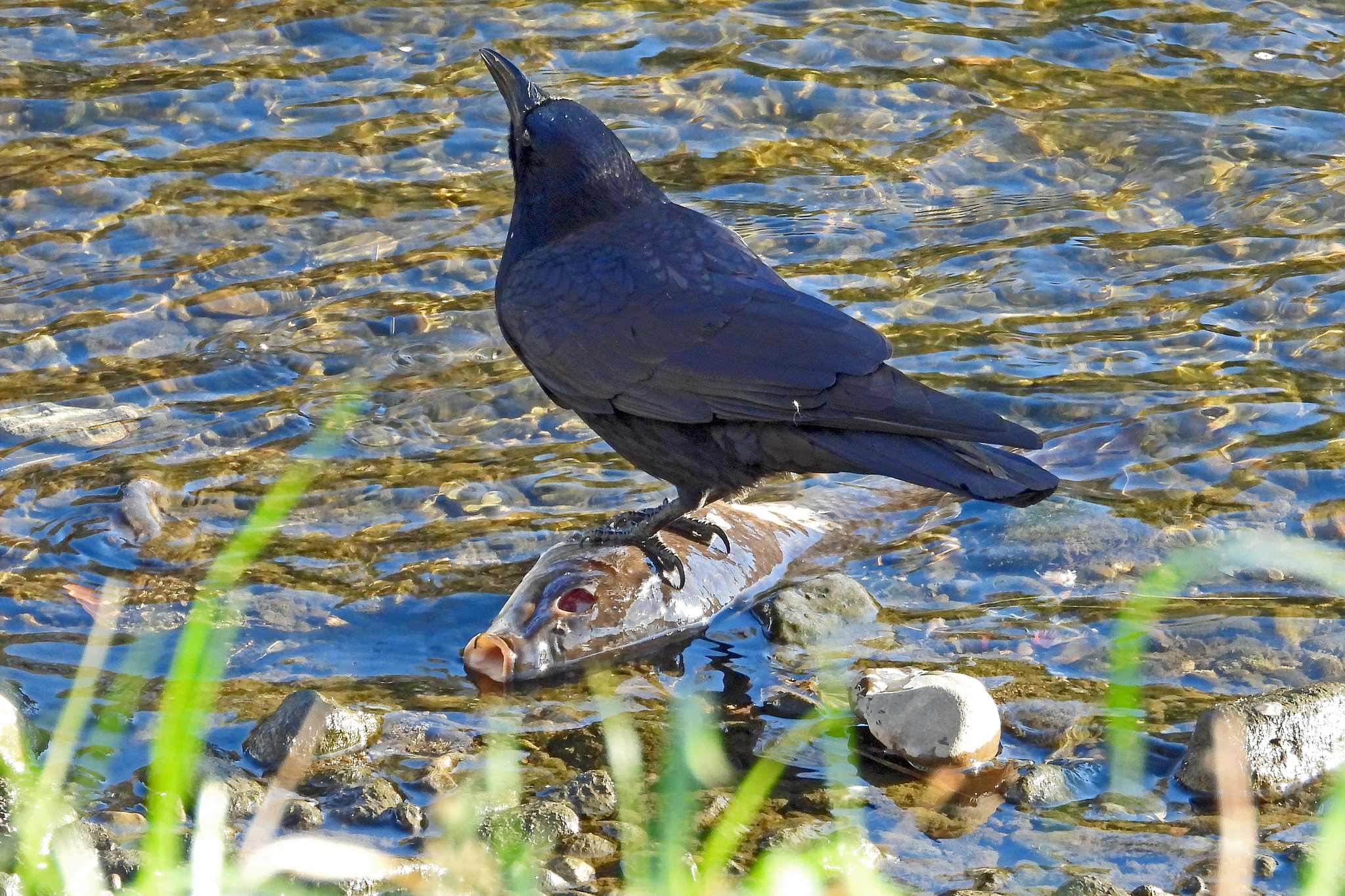 到着して、ふと川を見ると「ハシボソガラス」が居ました。