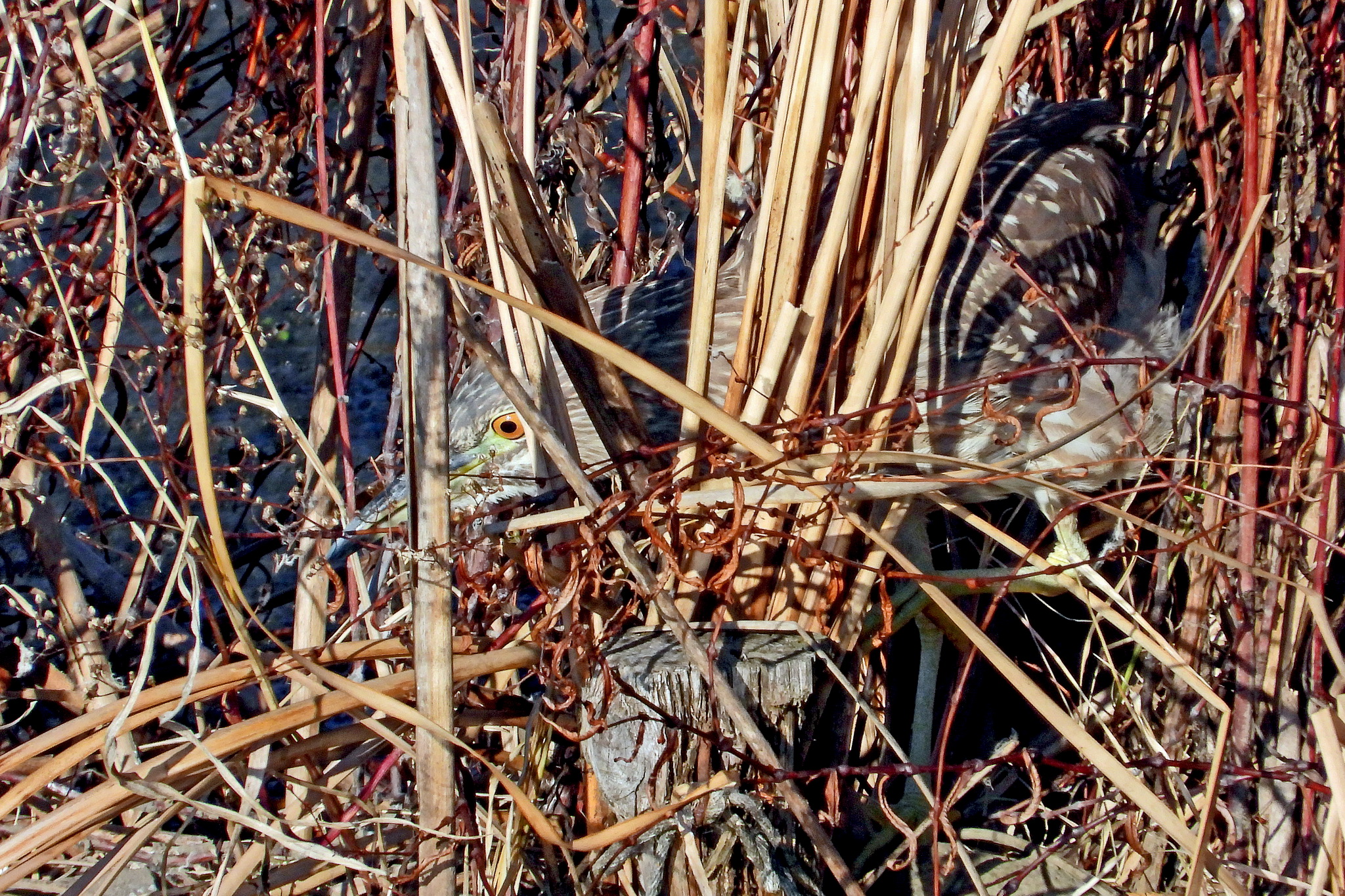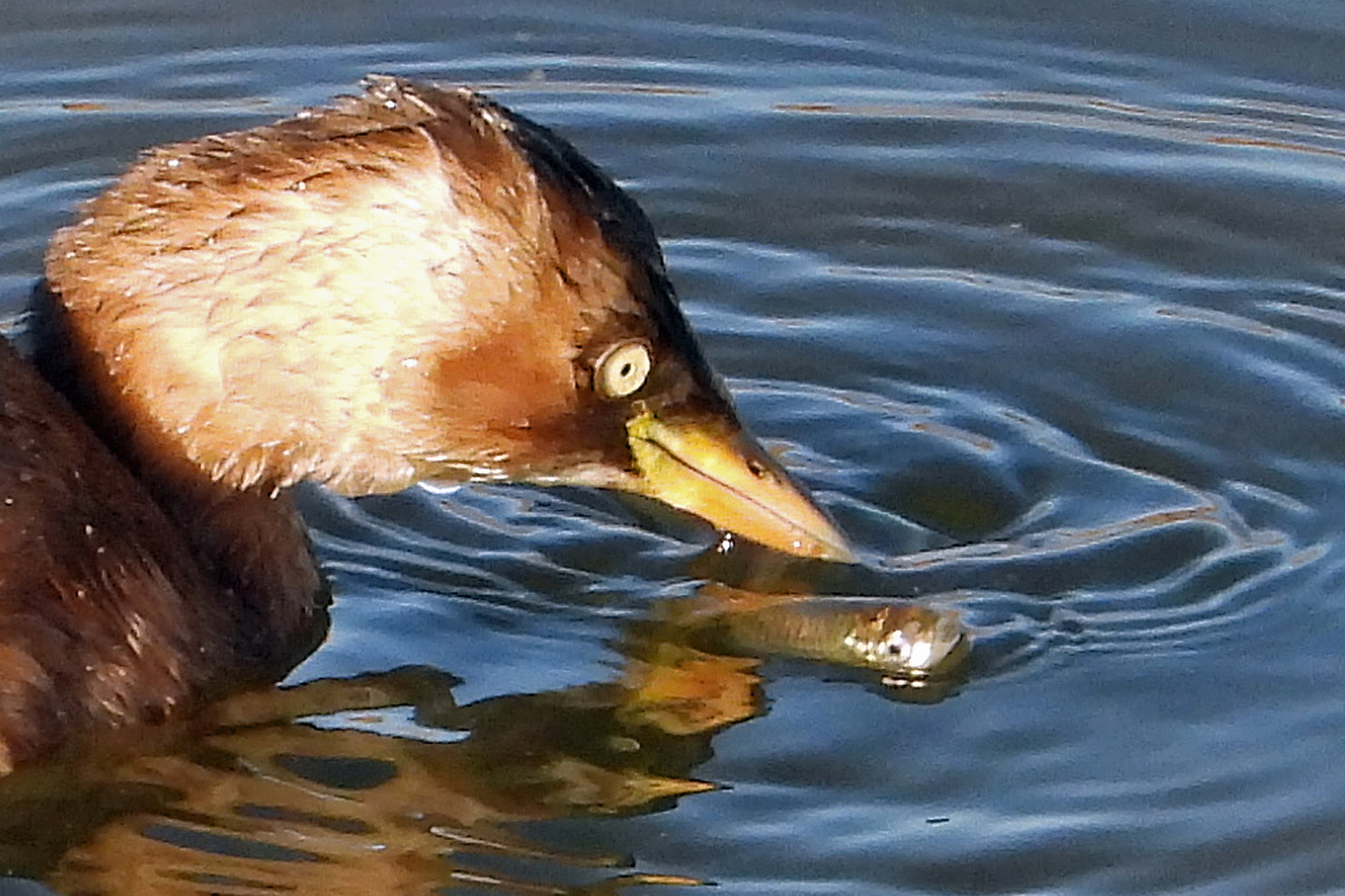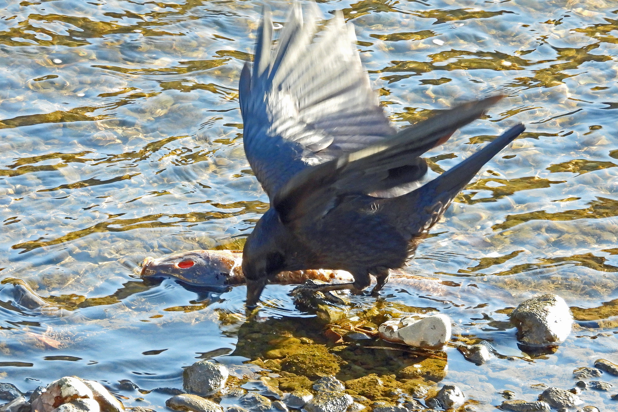 ん、あっ、鯉らしき魚をついばんでいるじゃないですか。