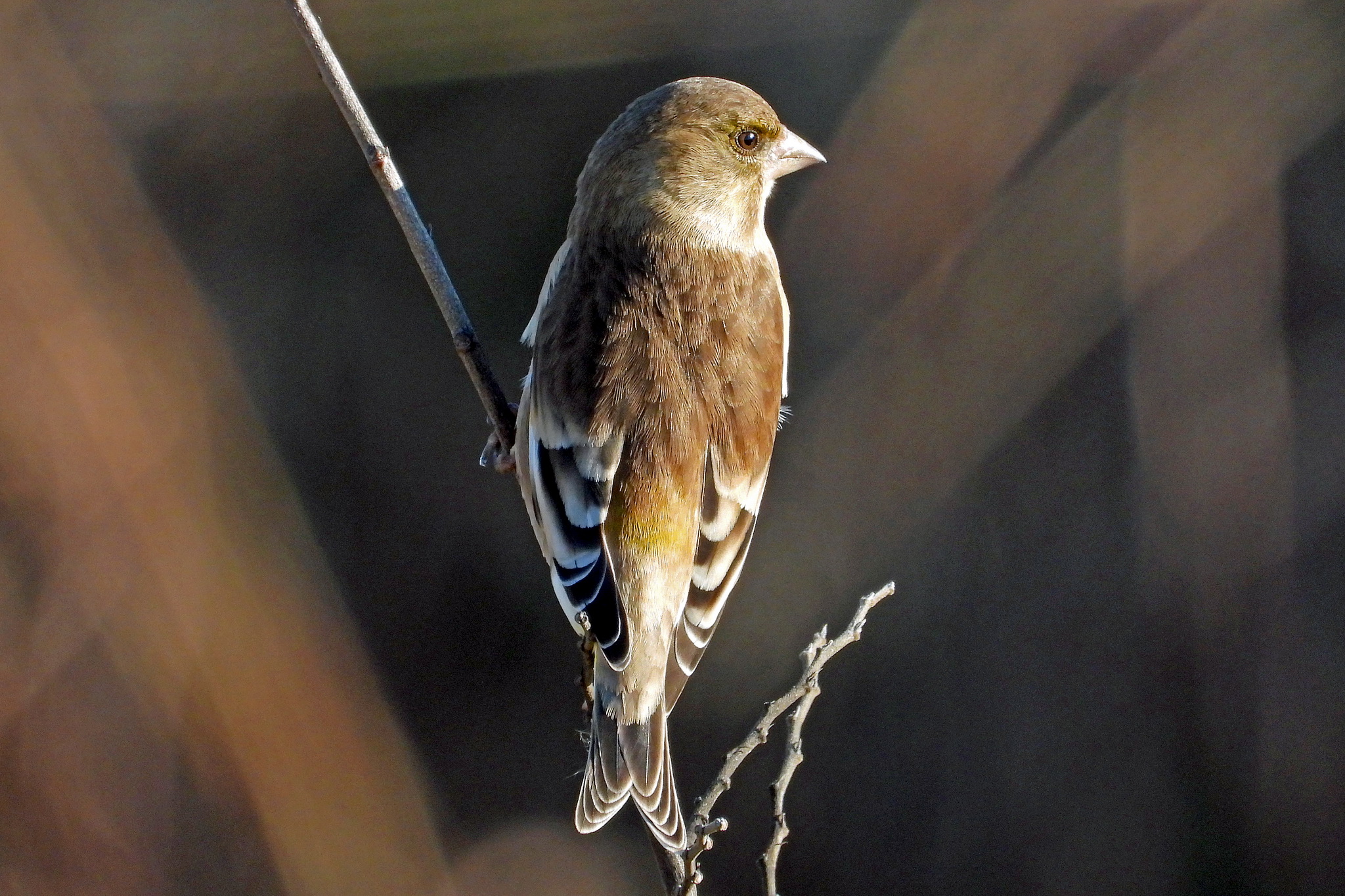 おっ、「カワラヒワ」が朝日に照らされてる。