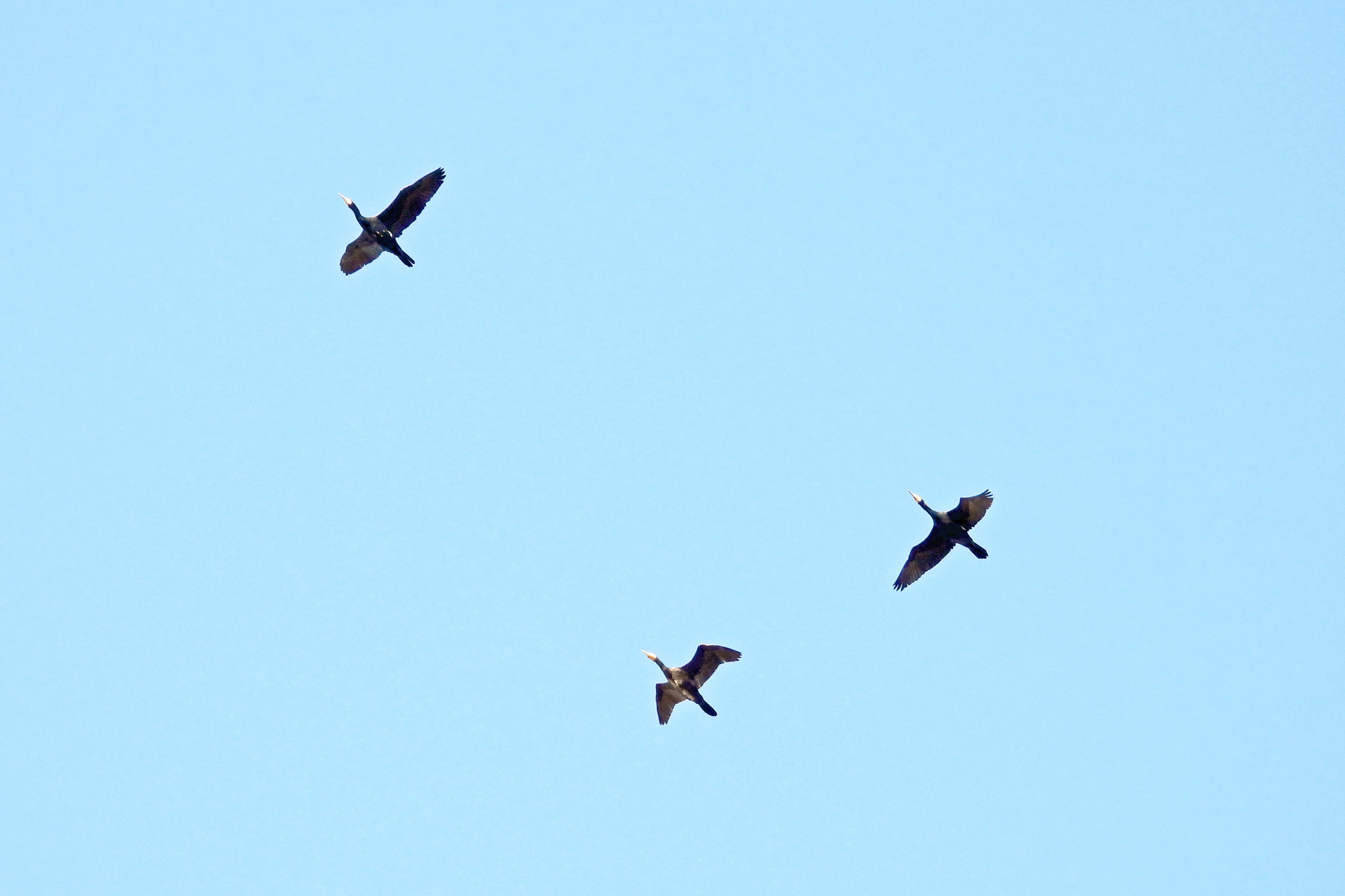 引き続き上流方向から「カワウ」三羽が飛んできました。