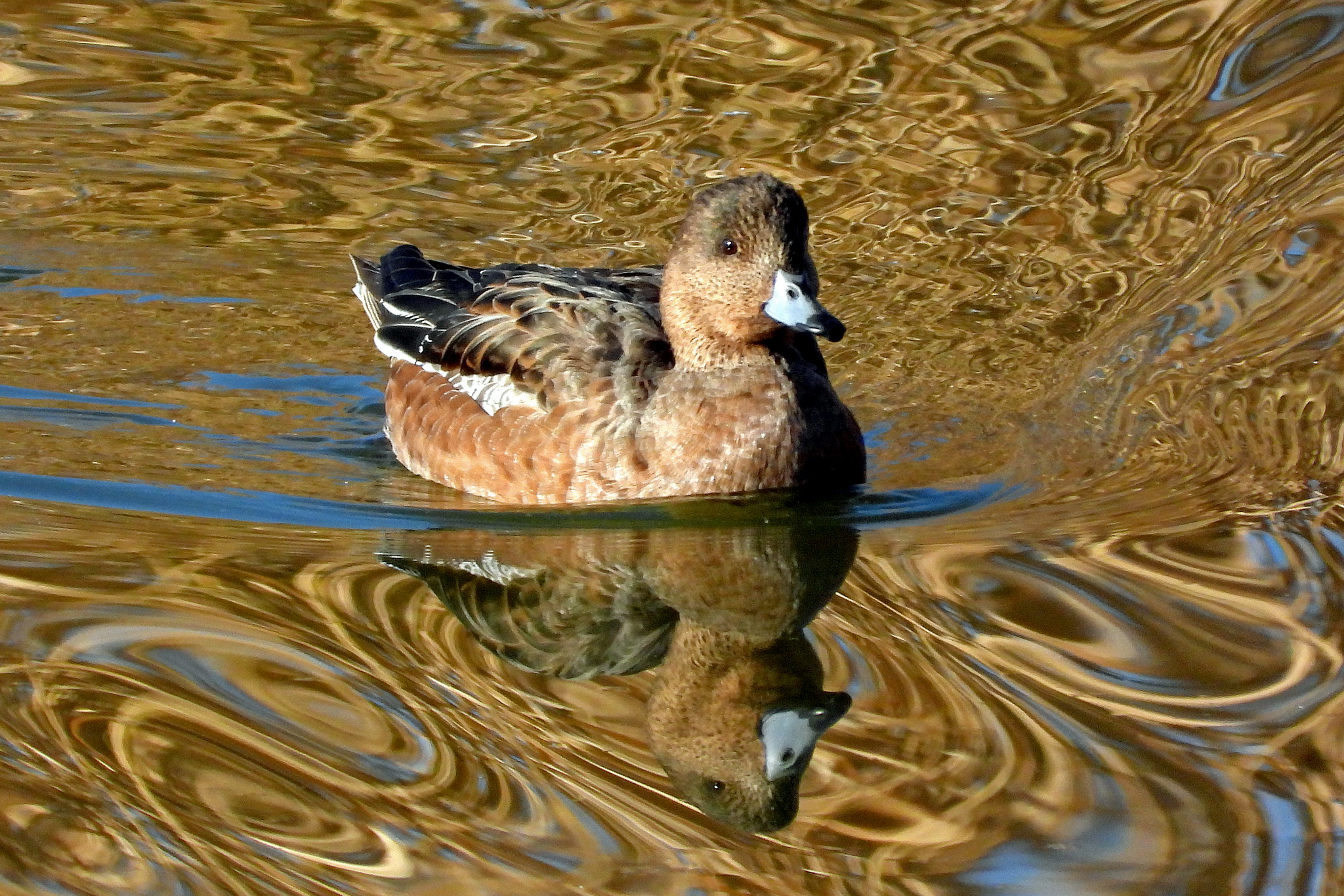 カップルらしき「ヒドリガモ」が泳いでいました。