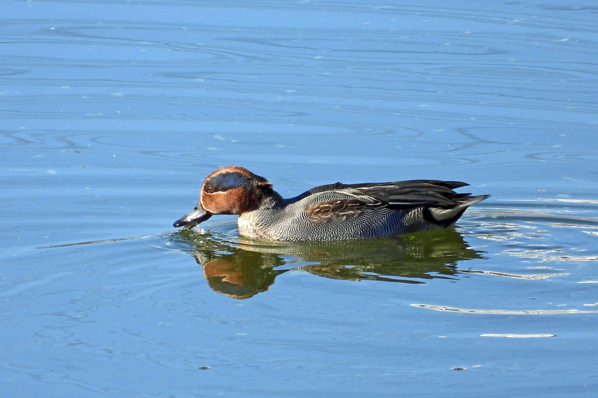 おっ、「コガモ」のオスが泳ぎ出てきた。
