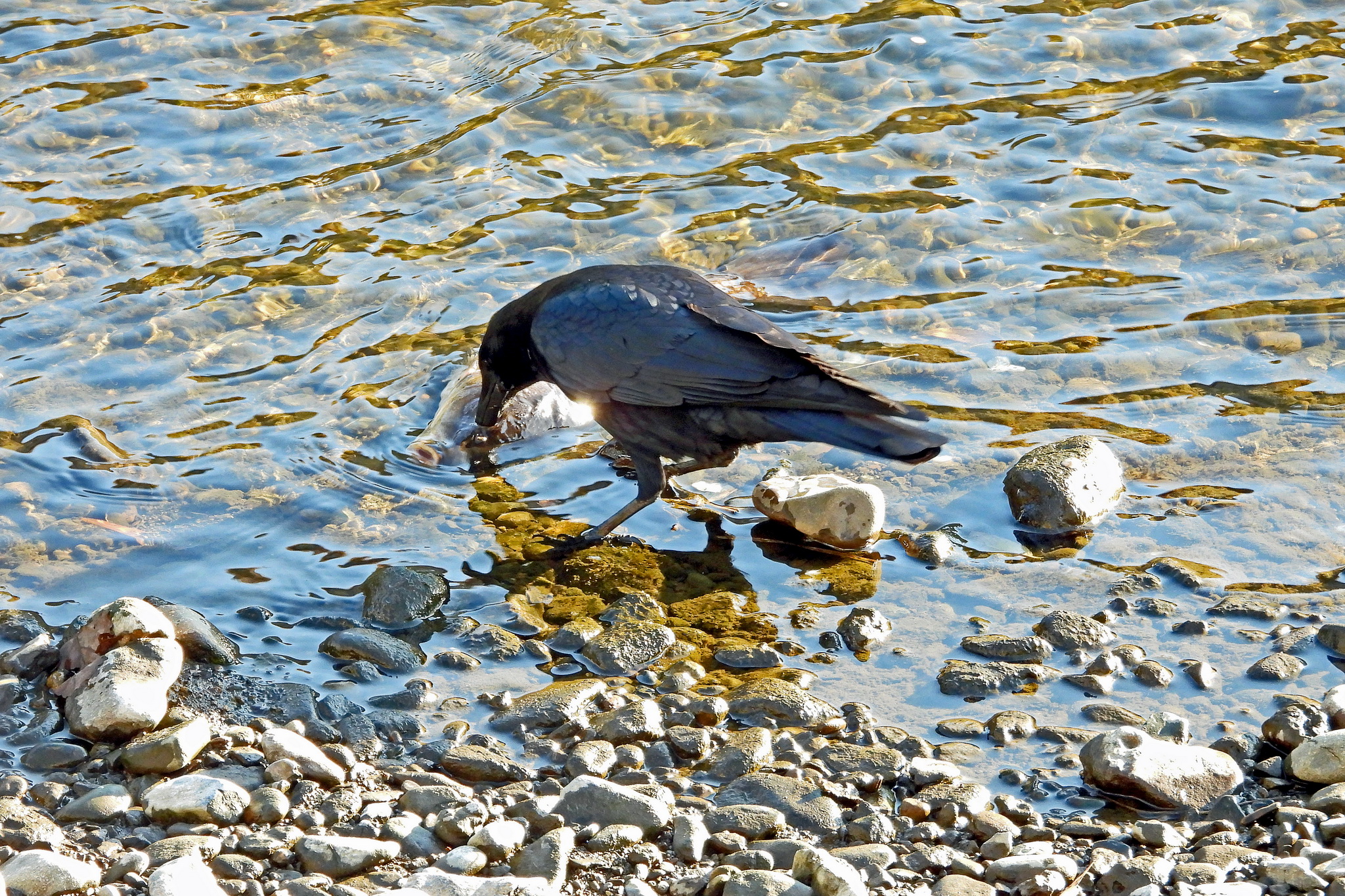 到着して、ふと川を見ると「ハシボソガラス」が居ました。