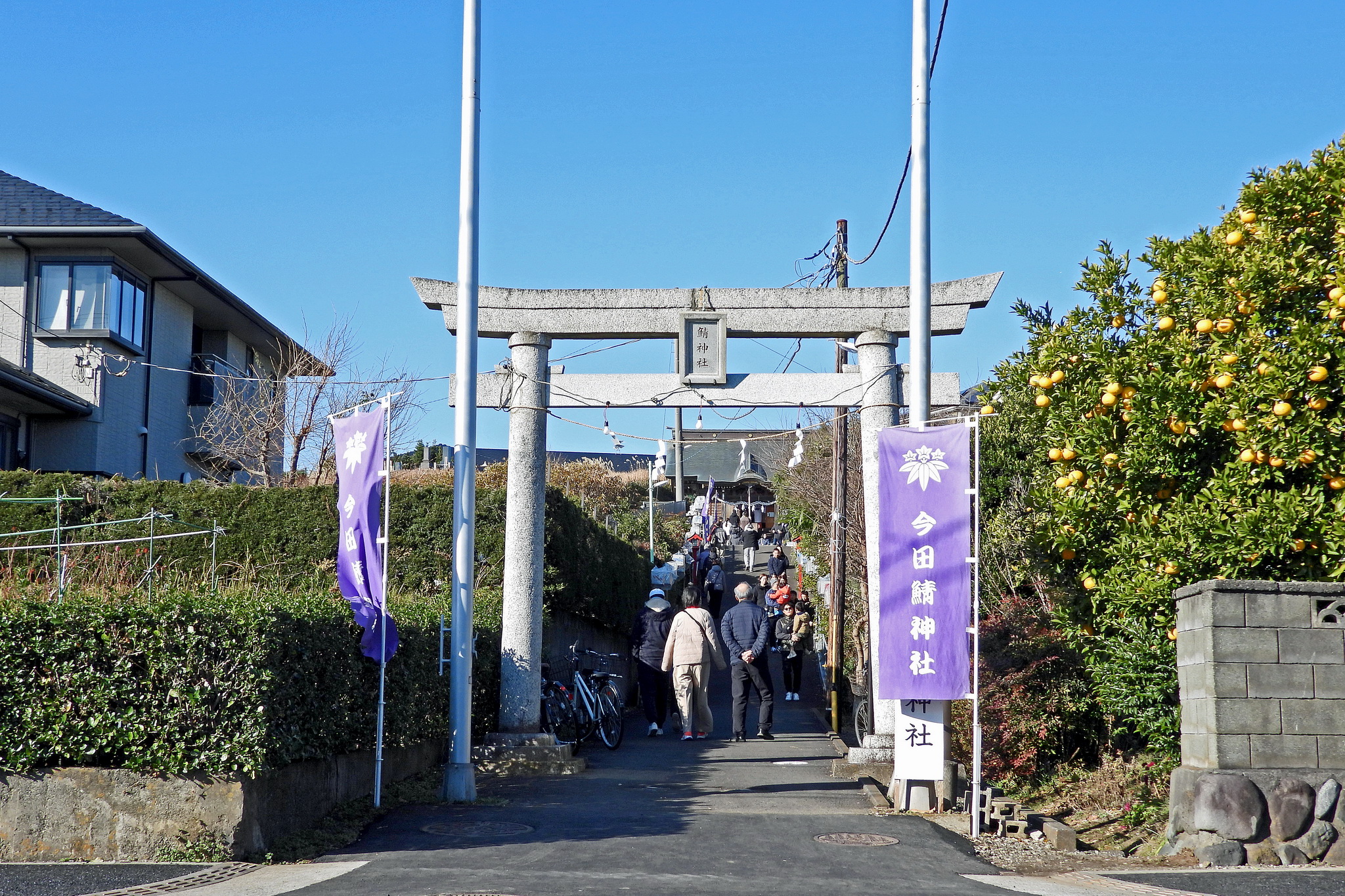 鳥居をくぐって、割と急な坂道を上ります。